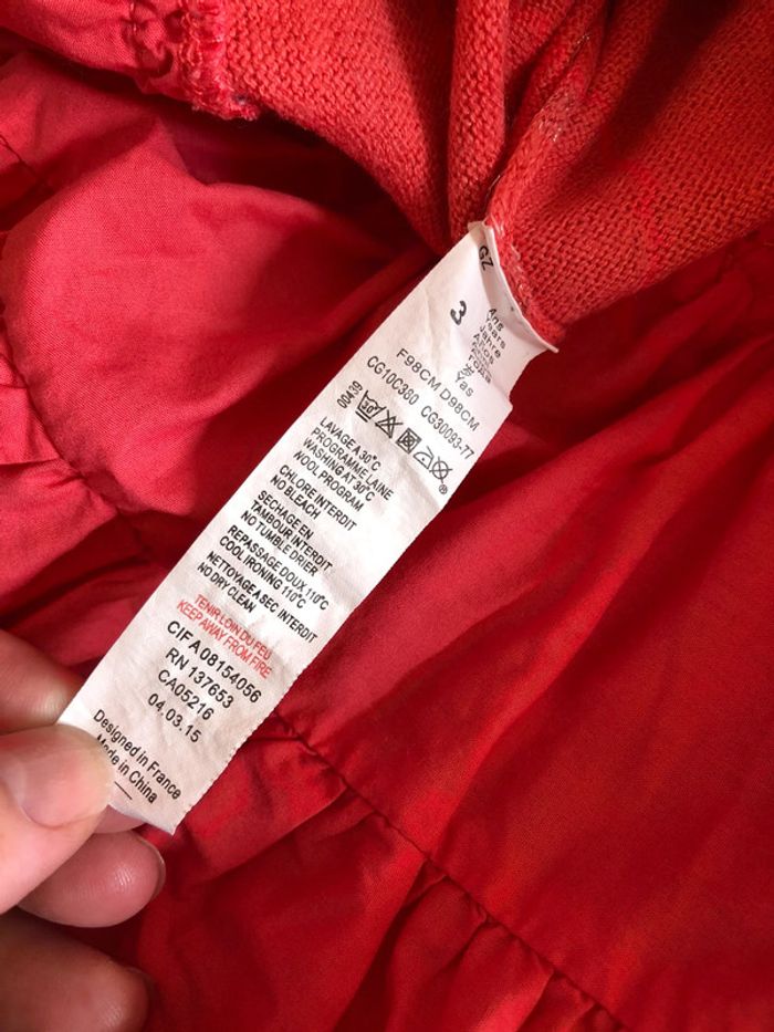 En bon état (très bon état mais des taches sur la bas: très discrètes quand la robe est portée ) Très jolie ligne Bien chaude avec 10% de laine Pensez à faire des lots pour bénéficier de réductions