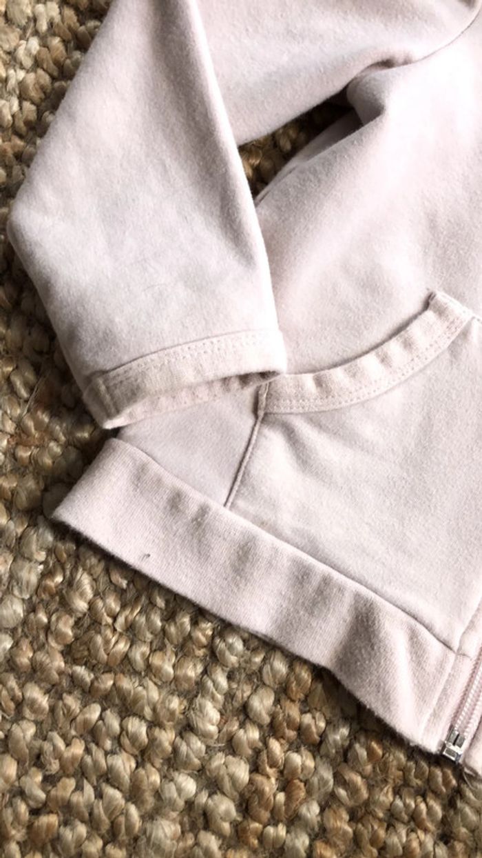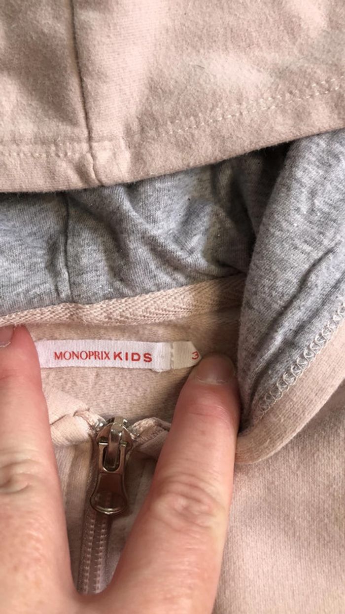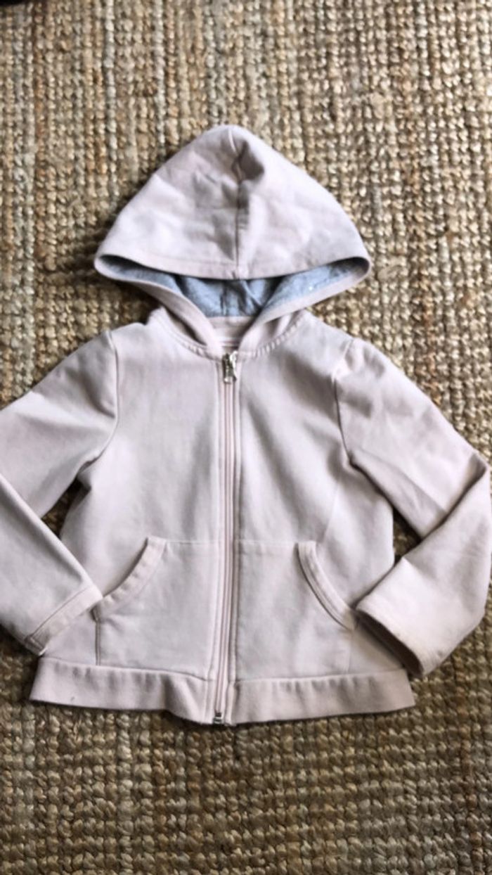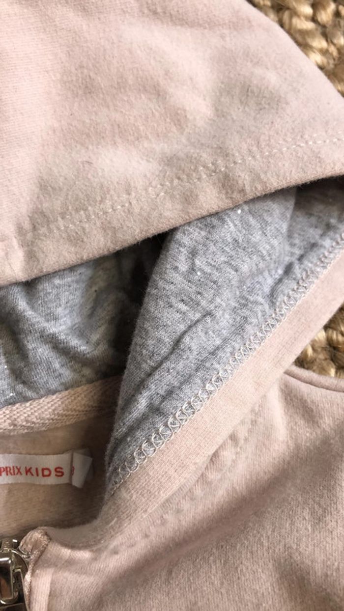 en bon état (bien porté mais sans trous ni taches) rose pale avec intérieur capuche gris pailleté zip fonctionnel pensez à faire des lots pour bénéficier de réductions