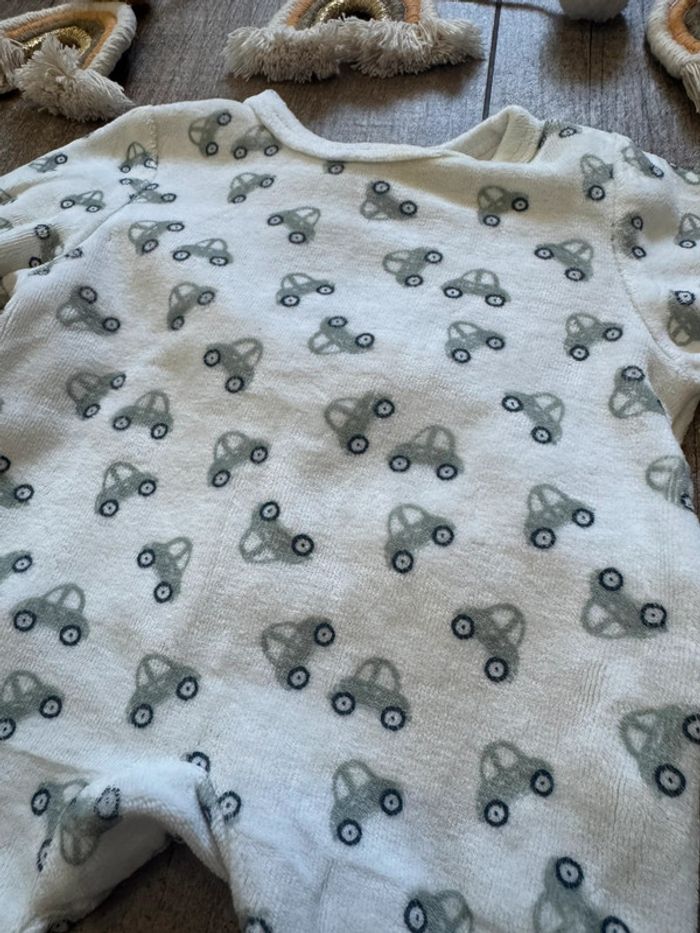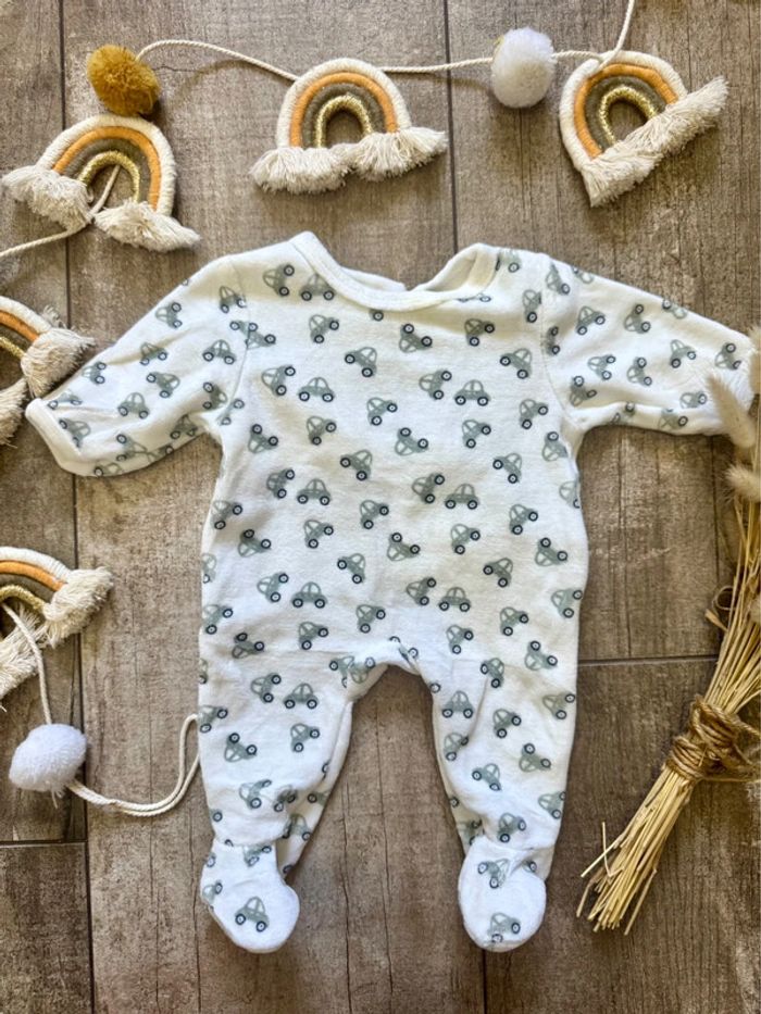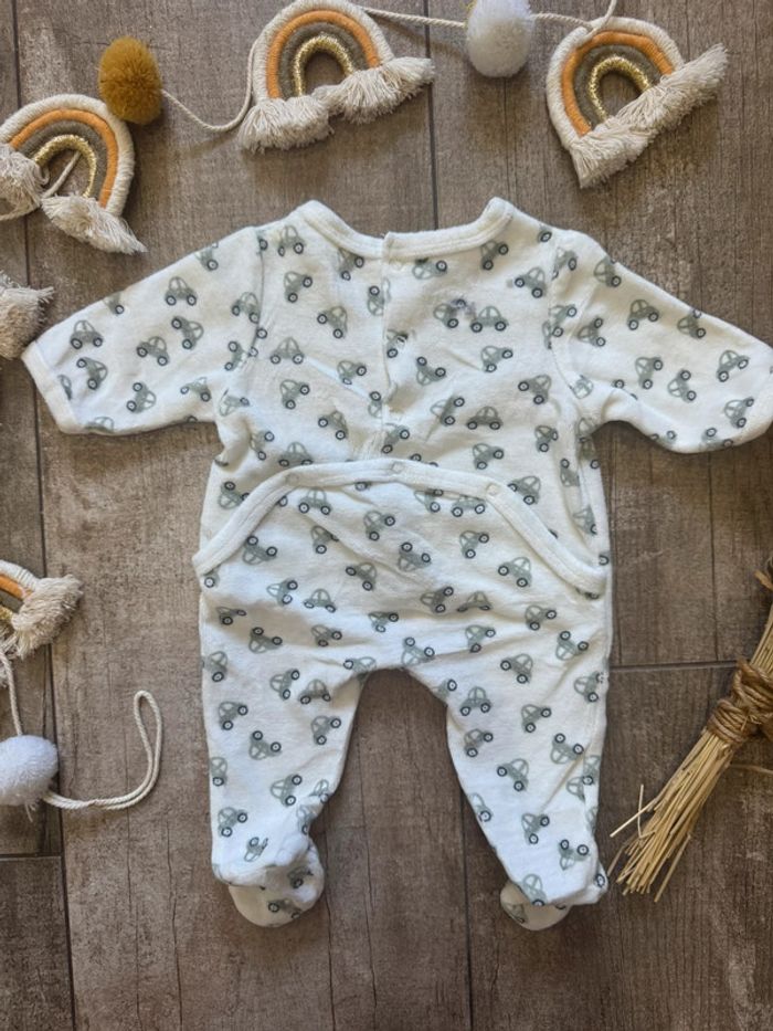 ☀️Parfait état comme neuf Pyjama blanc voiture vert d’eau ☀️Marque vertbaudet Taille 0 mois naissance New born 50vm Tout doux ❤️☀️ Maison non fumeur Envoi rapide