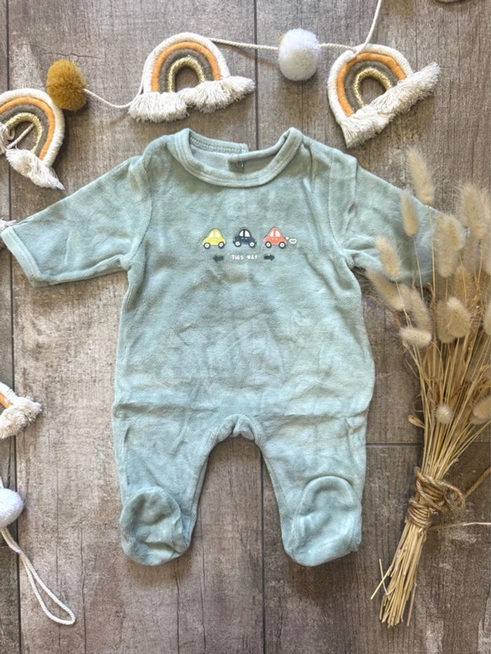 Parfait état comme neuf Très joli pyjama une pièce vert d’eau moitié véhicule Tout doux ❤️ ☀️Taille New Born 50cm jusqu’à 1 mois Maison non fumeur Envoi rapide