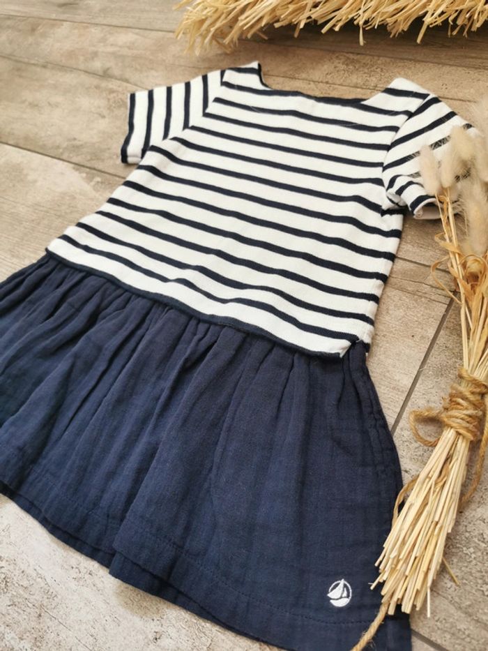 🍓Robe Petit Bateau 3ans fille marinière bleu marine blanc coton 🍓 - photo numéro 3