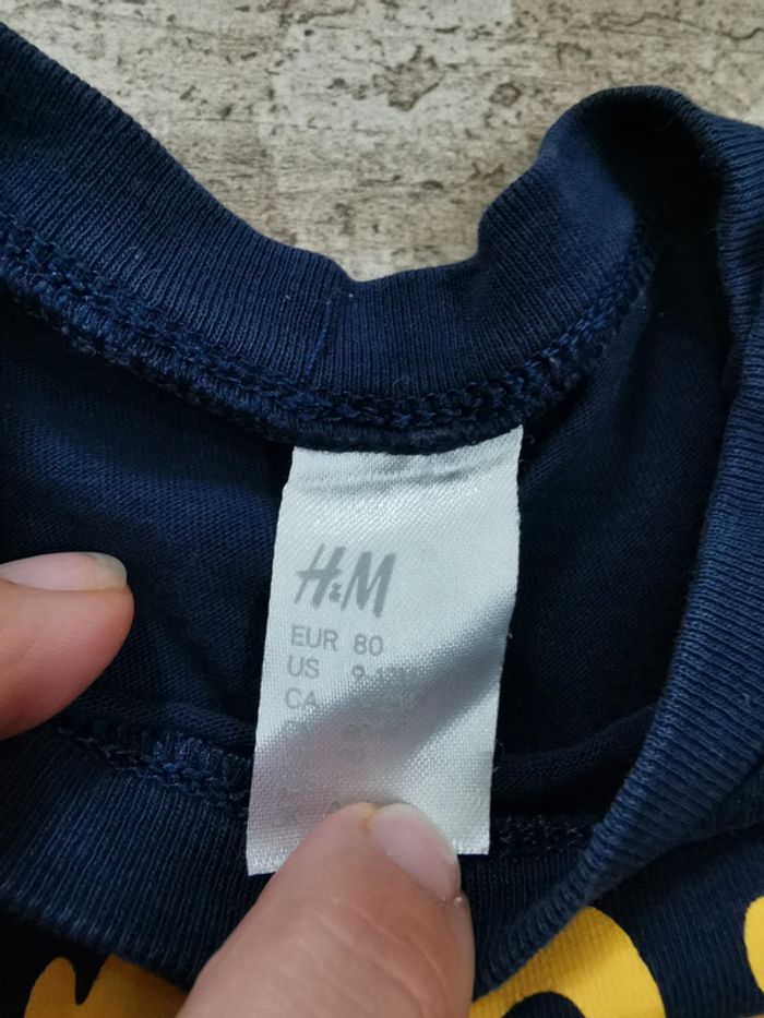 🌸Tee-shirt HetM sandiego 9mois bleu marine jaune moutarde - photo numéro 1