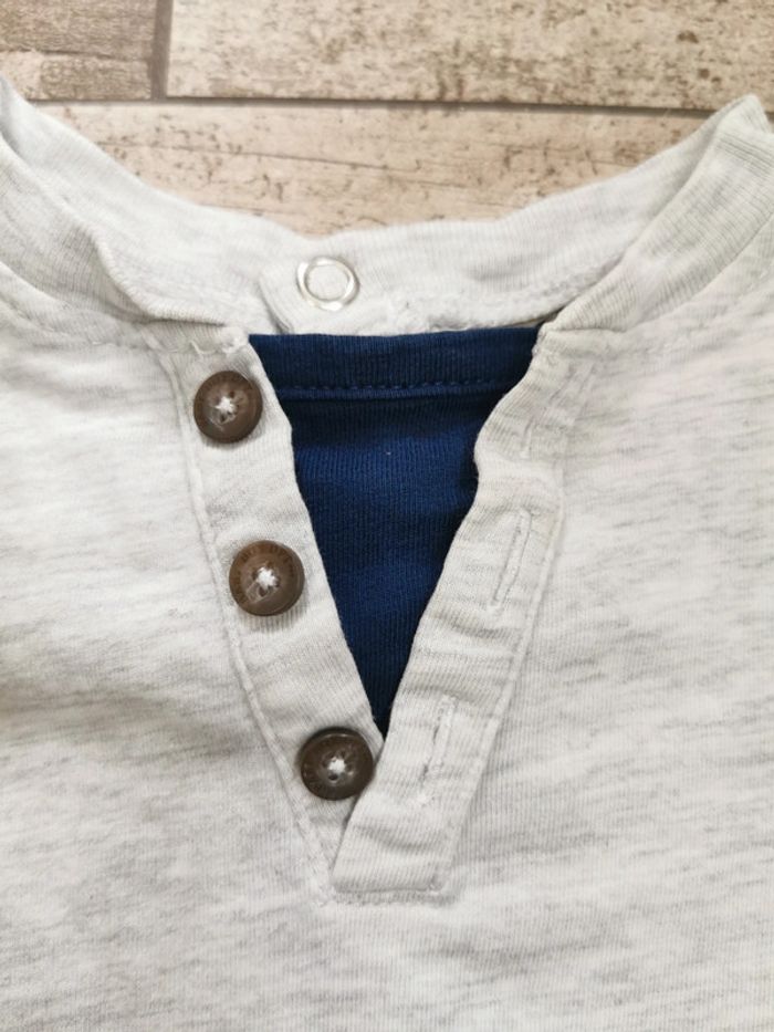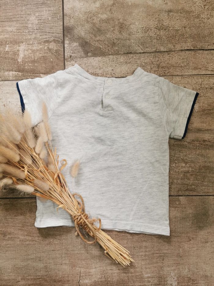 🌸Tee-shirt Tape à l'œil 9mois gris bleu baleine Boutons sur le col type bois Parfait état Motif baleine Effet sous teeshirt bleu marine #tapealoeil #9mois #teeshirttapealoeil9mois #gris #garçon #bebe #enfant #obaibi #puericulture #eveil #tao