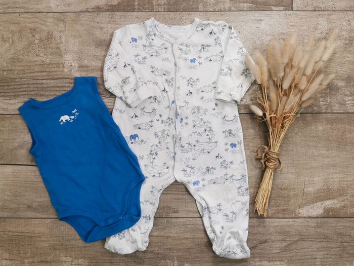 🌸Je vends également un pyjama une pièce 9mois blanc et bleu de la même collection sur mon dressing de la même marque