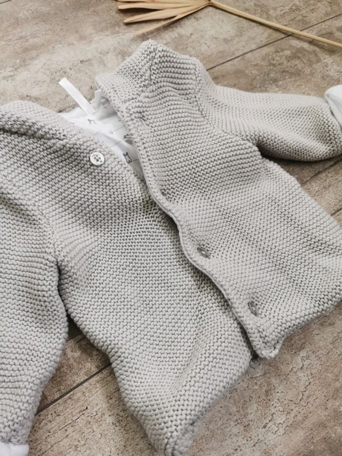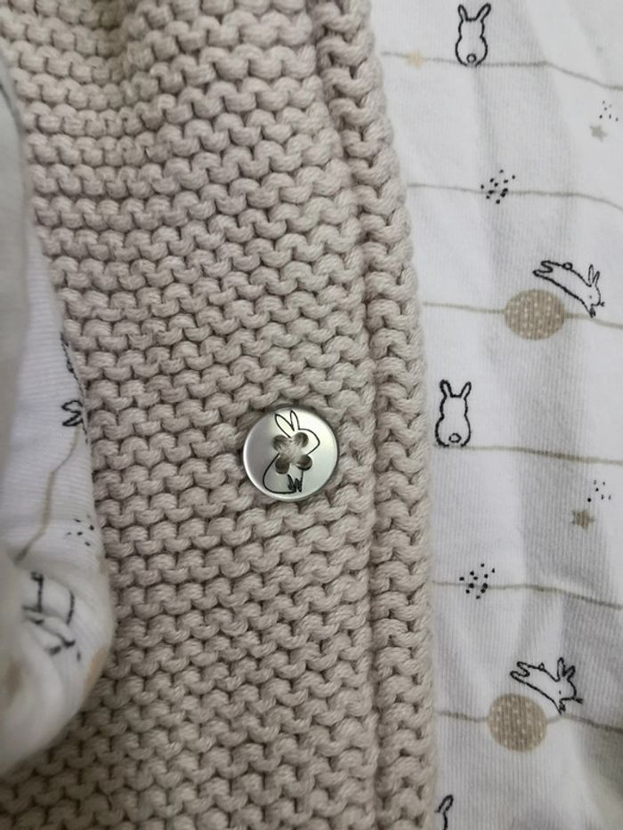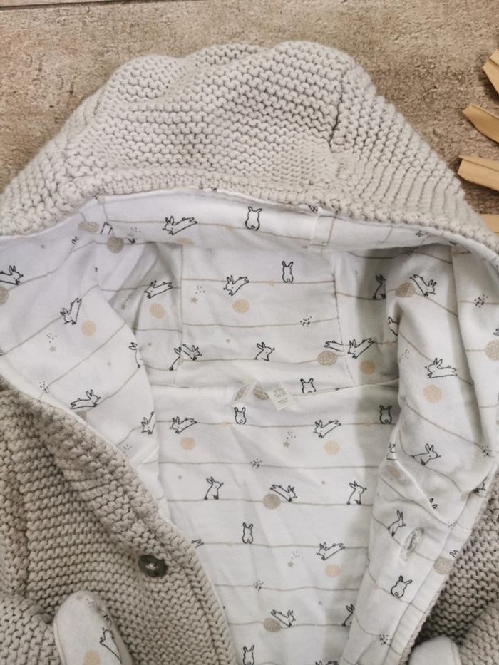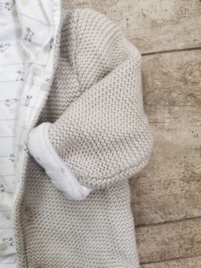 🌸Gilet veste capuche maille Gris et blanc lapin Orchestra 12mois - photo numéro 3