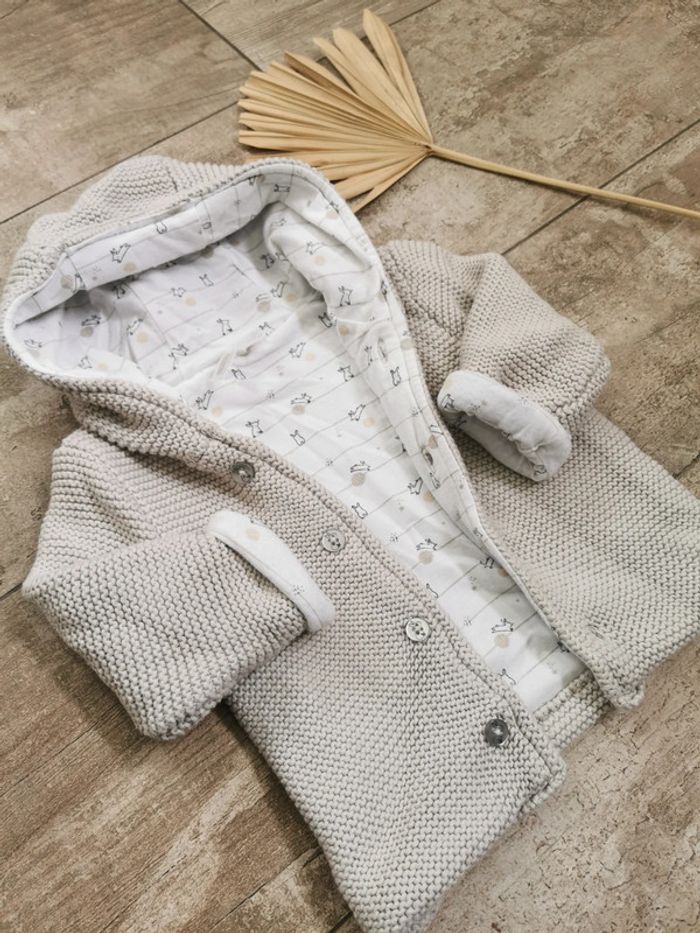 🌸Gilet veste capuche maille Gris et blanc lapin Orchestra 12mois - photo numéro 1