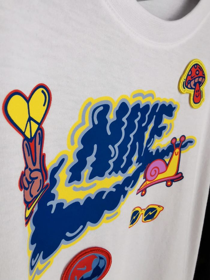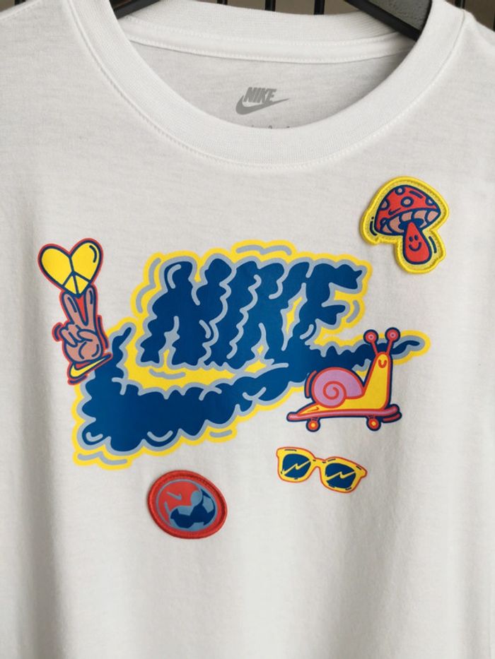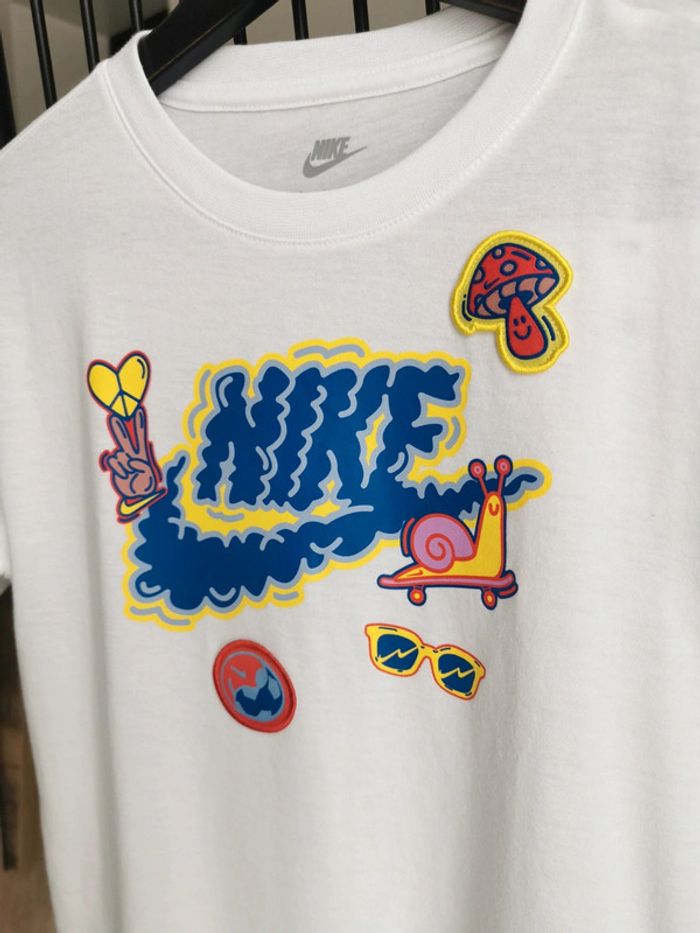 🔥Très joli Teeshirt blanc Nike mixte Blanc et coloré fluo Peace, escargot, champignon, ballon, lunette Taille 6/7ans 116/122cm Neuf avec étiquette 🔥 #nike #teeshirtenfant #teeshirtnike #teeshirt6ans #6ans #nikesportswear #nikeair #nikeneufavecetiquette #7ans