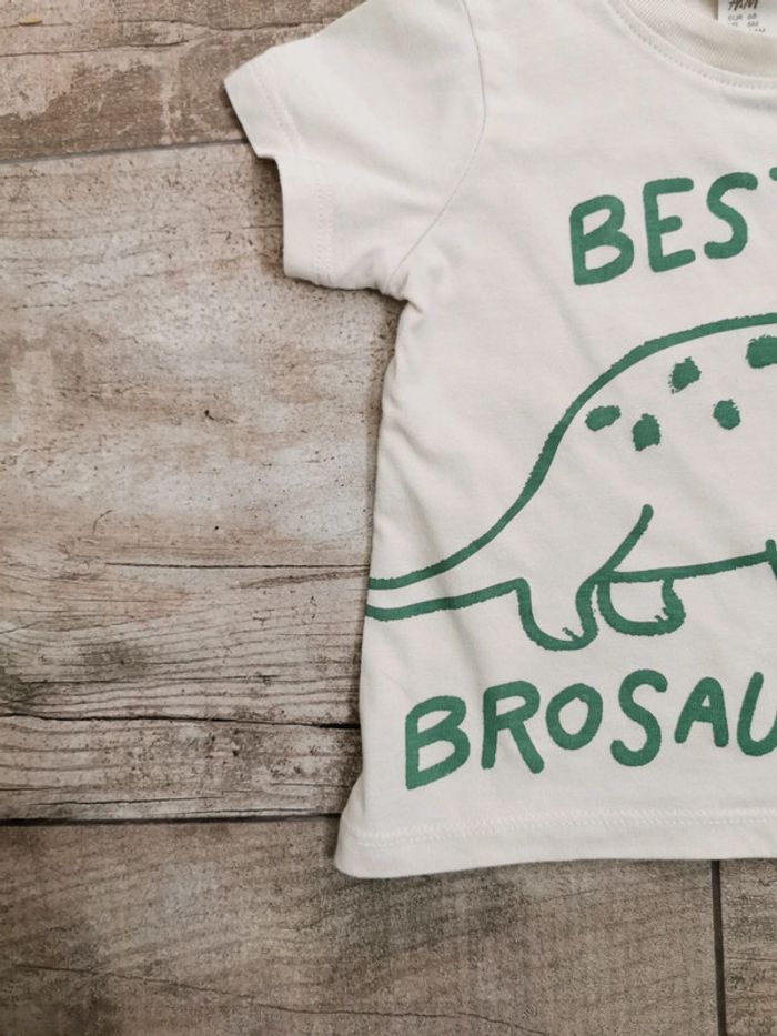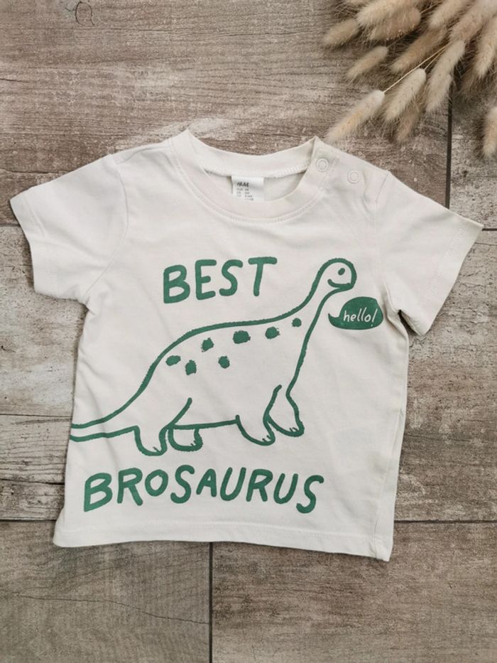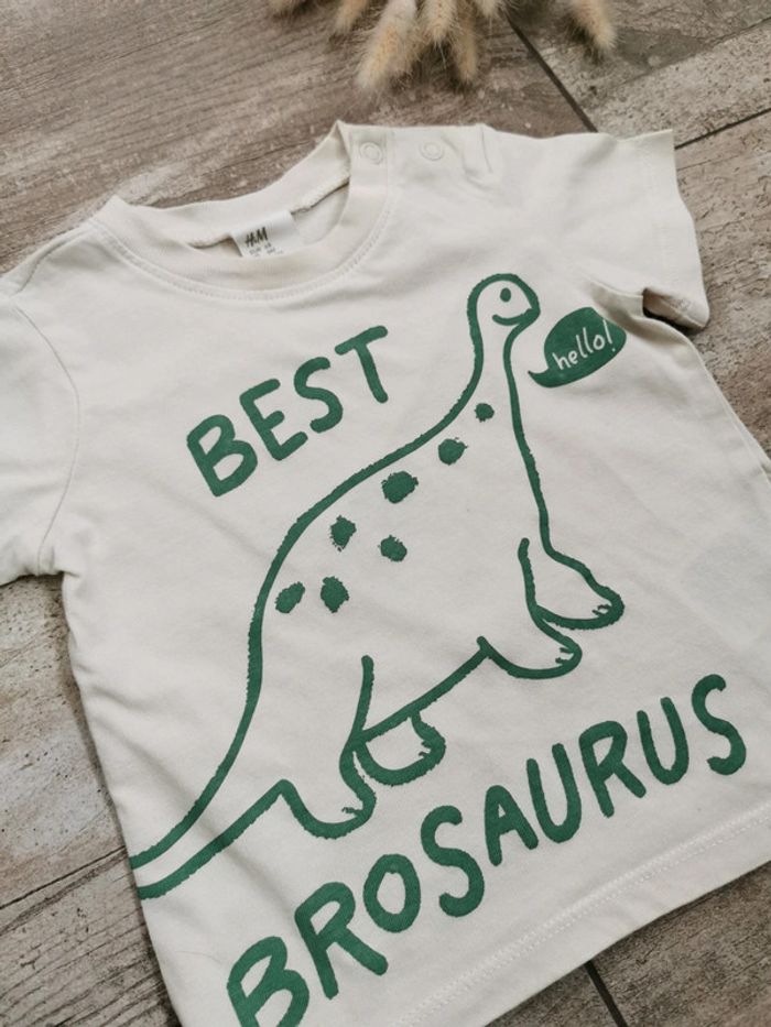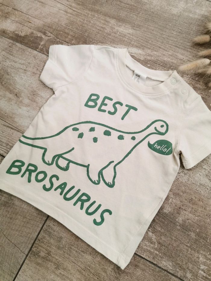 🌺HetM Très joli Teeshirt Taille 6mois Motif dinosaure Couleur beige et vert "best brosaurus" #hetm #6moisgarçon #hetmbébégarçon #pullhetm #teeshirthetm6mois #dino #tapealoeil #verbaudet #zara