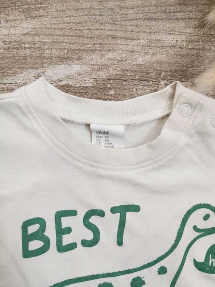 🌺HetM Très joli Teeshirt 6mois dinosaure beige et vert best brosaurus - photo numéro 1