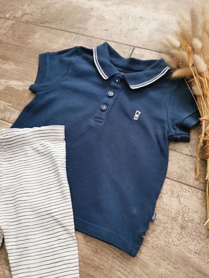 🌼Ensemble polo bleu Obaibi et pantalon DPAM 6mois - photo numéro 3