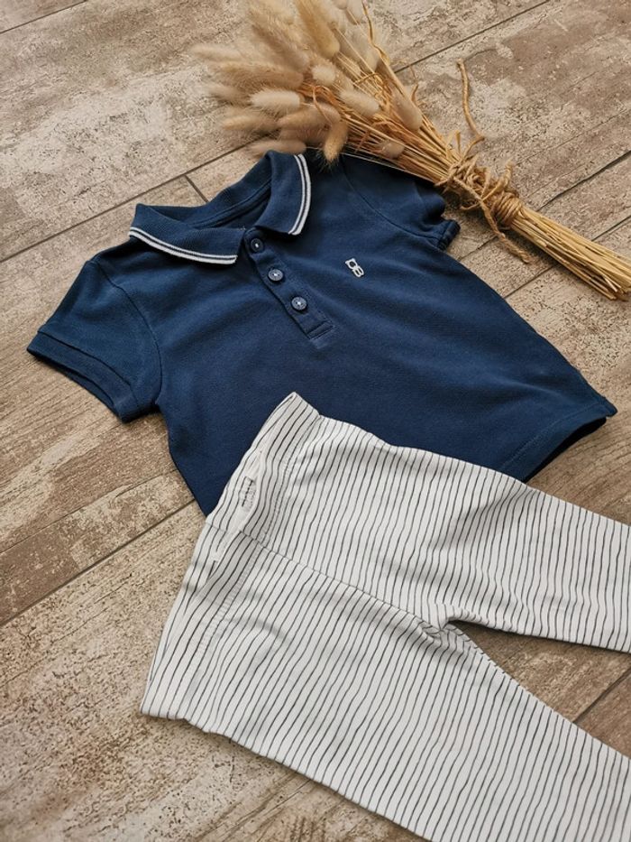🌼Ensemble polo bleu Obaibi et pantalon DPAM 6mois - photo numéro 1