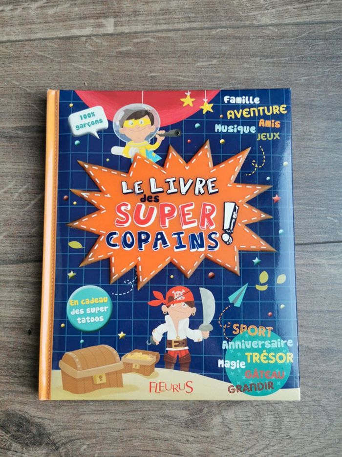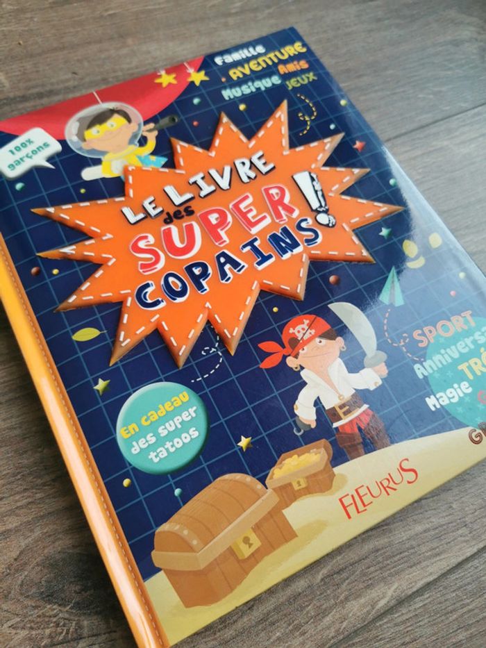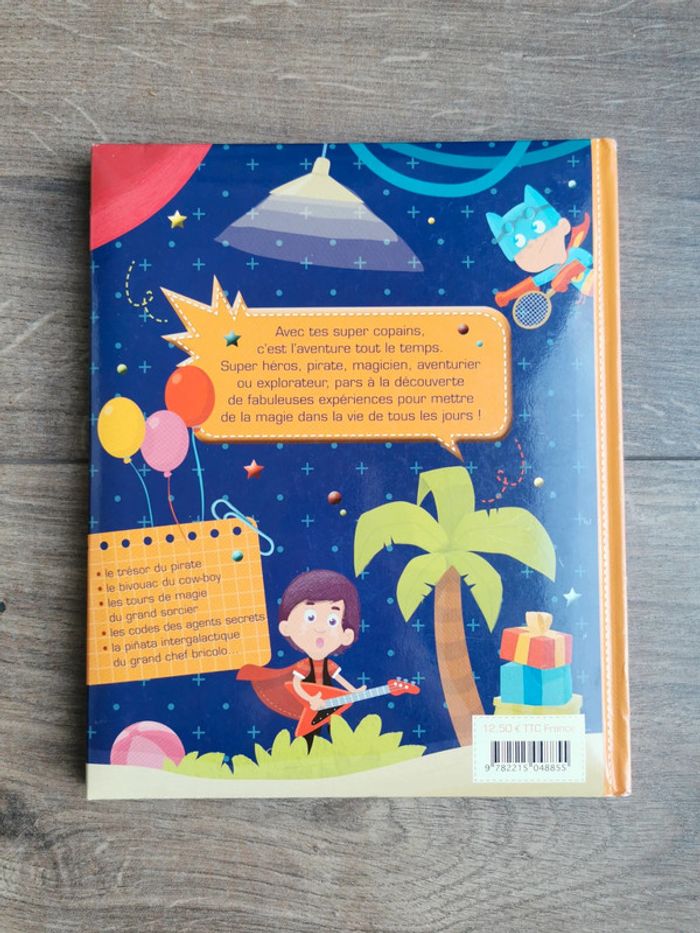🌺Parfait état. Comme neuf Super livre enfant de la marque Fleurus Très complet 60 pages pleins d'idées 🌺Avec tes supers copains c'est l'aventure tout le temps super-héros, pirate, magicien aventurier ou explorateur, pars à la découverte de fabuleuses expériences pour mettre de la magie dans la vie de tous les jours ! le trésor du pirate, le bivouac du cowboy, les tours de magie du grand sorcier, les codes des agents secrets, la Pignata intergalactique du grand chef Bricolo... Marque Fleurus🌺 100% garçons Tatoos a l'intérieur également 🌼