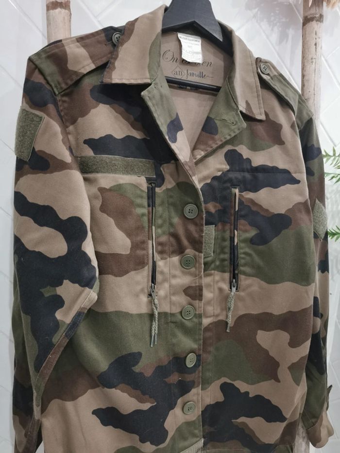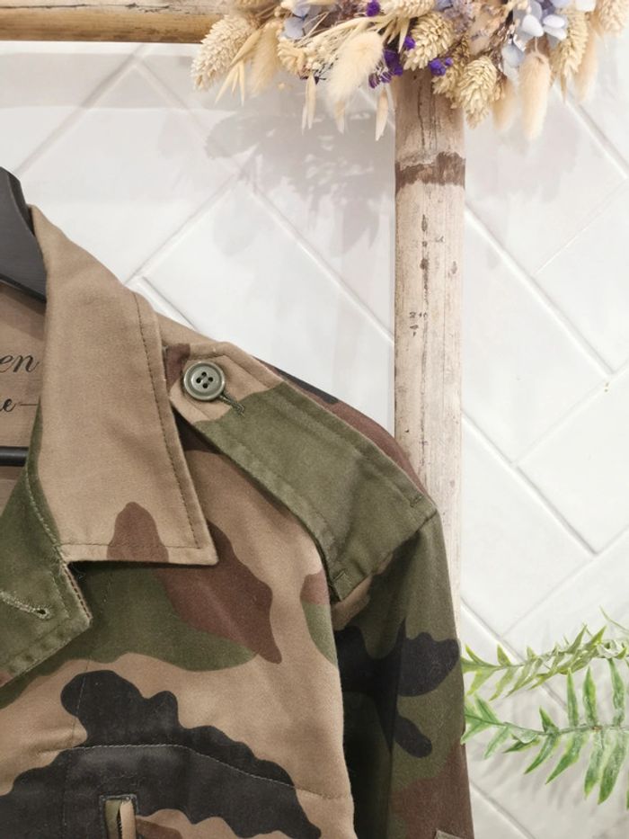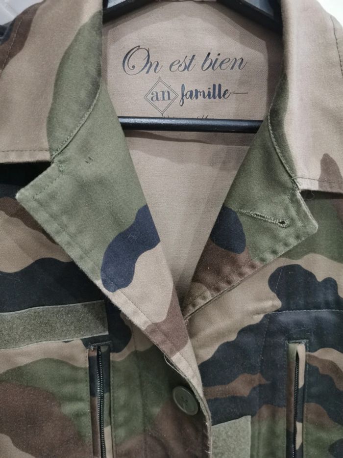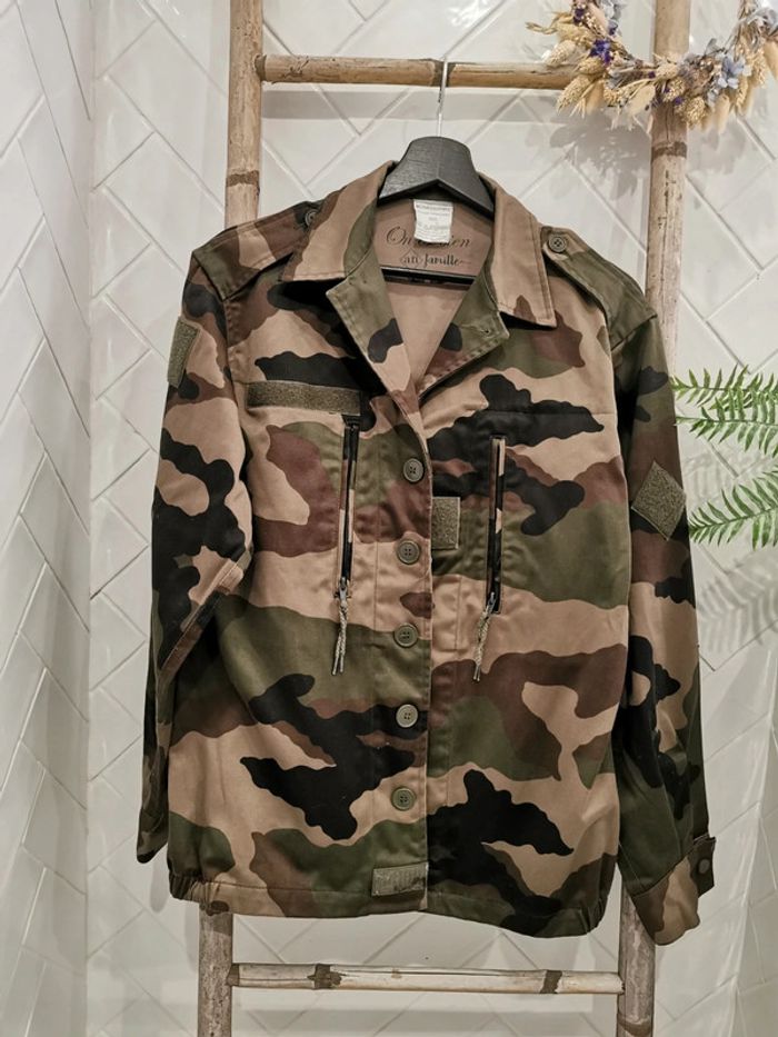 Parfait état 🌺 bohème chic Très jolie veste Militaire 🌺 motifs camouflage veste 95c "On est bien an famille" Marque française - boutique parisienne #vintage #militaire #veritable #authentique #camouflé #kaki