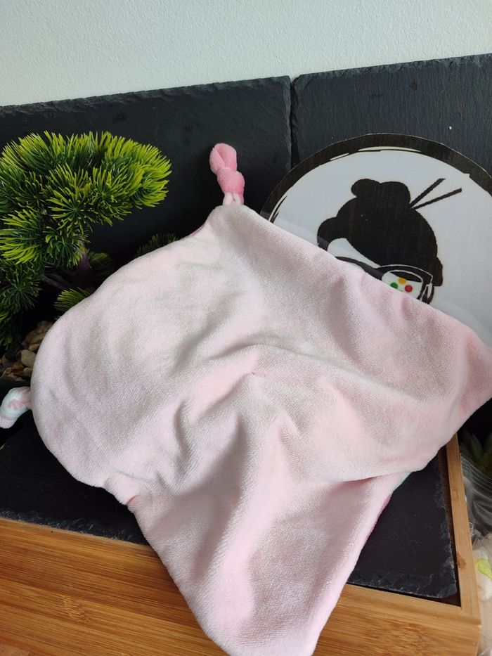 Doudou Knuffel Ours Gémo Gris Rose Bleu Fleur Capuche Blanc Carré Plat DD003455 - photo numéro 2