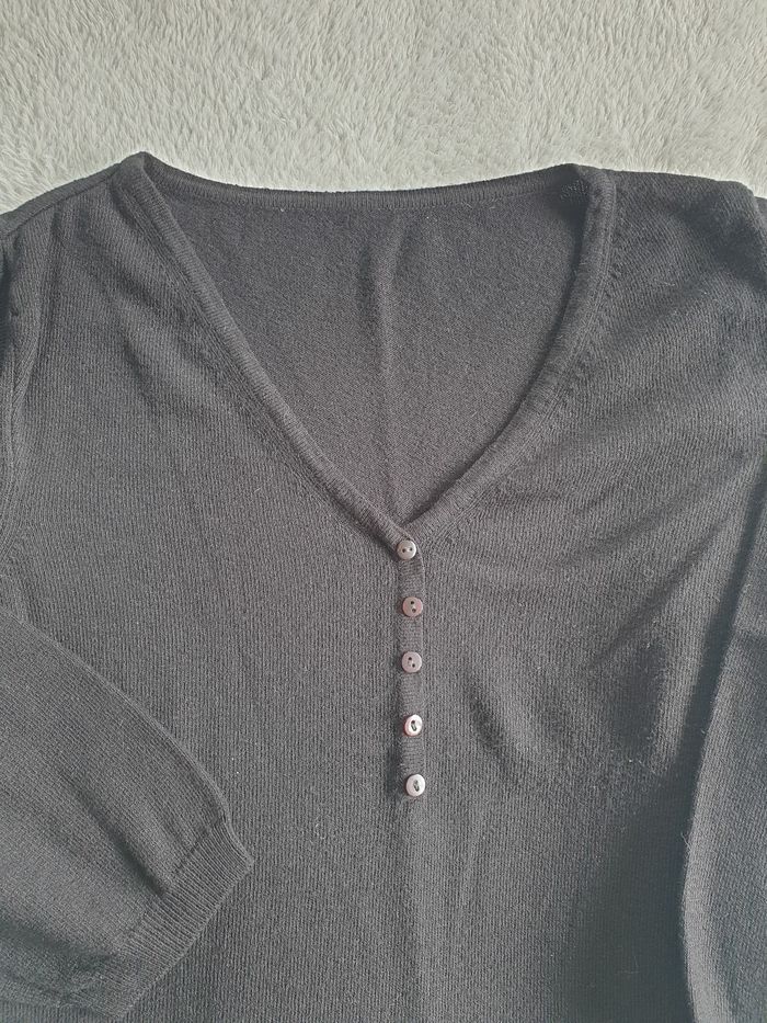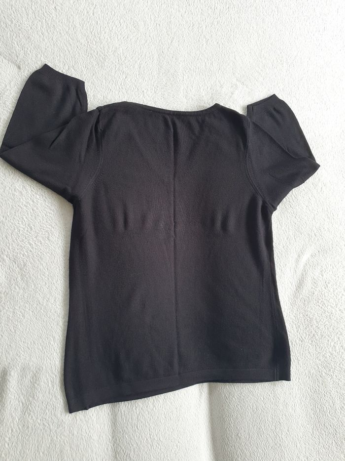 Pull noir manches 3/4. Taille L. Avec un vol en V et des boutons décoratifs sur le devant. Parfait état. Très peu porté.