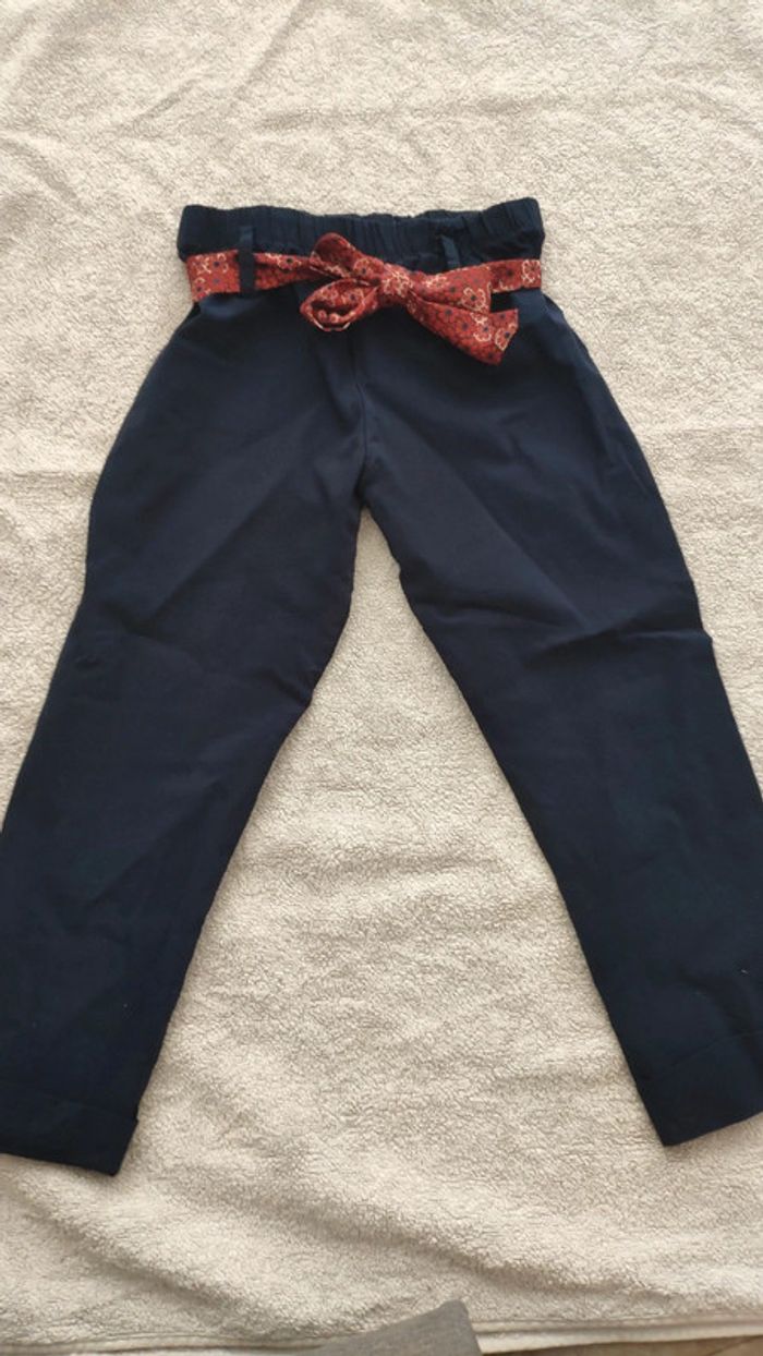 Pantacourt 6 ans Bleu marine Avec un ruban rouge bordeaux à nouer autour de la taille Bas retroussé P'tit môme Lavé jamais porté #6ansfilleaurelie8751