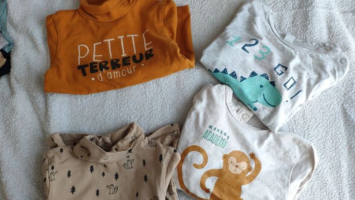 Lot de 2 t-shirts manches longues 18 mois Marques diverses : 1 dpam 2 tao 1 tex 1 Disney 1 bout'chou 3 Kiabi 1 obaibi 1 orchestra Photo 8 en bon état (2 pièces) Photo 9 très bon état Photo 10 offert en plus (2 col roulé en 24 mois en bon état et 2 manches longues 18 mois avec une légère tâche) (3 Kiabi et un tex) #18moisaurelie8751
