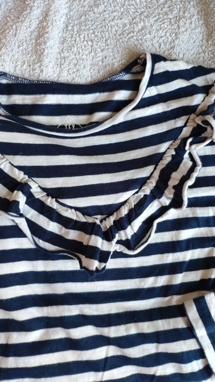 Lot de 2 t-shirts manches longues 6 ans tex Un rayé bleu et blanc un rosé #6ansfilleaurelie8751