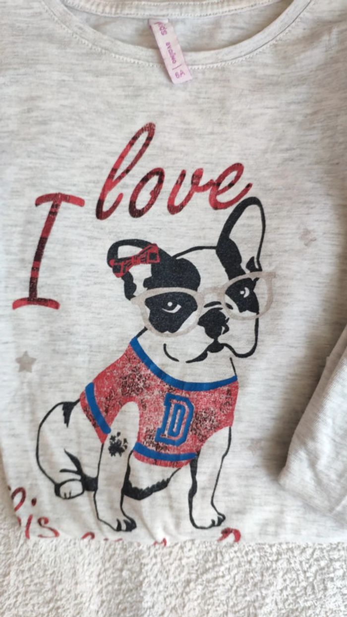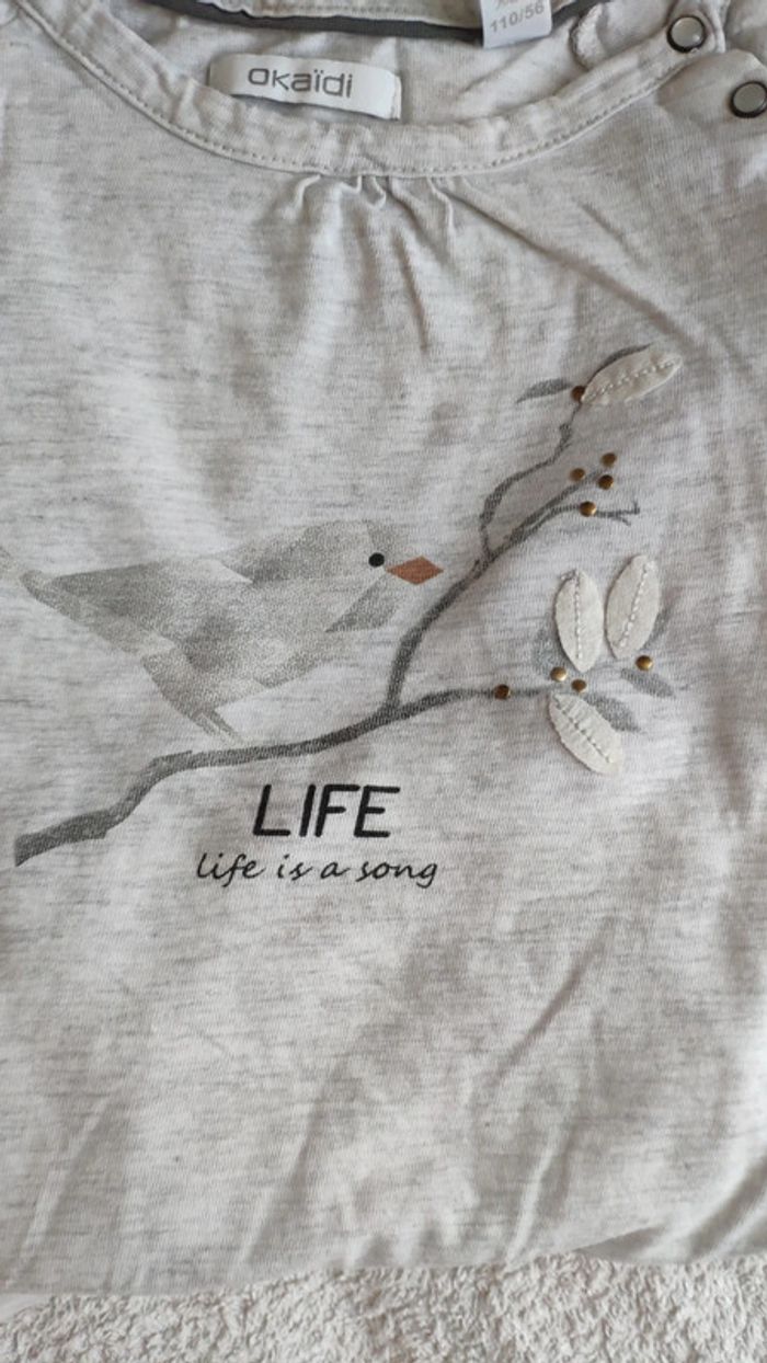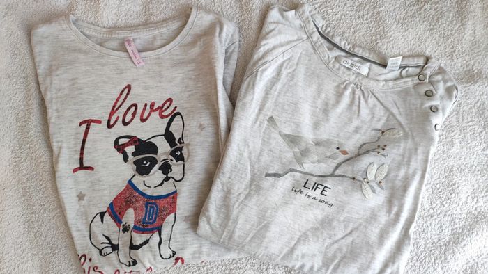Lot de 2 t-shirts manches longues Okaïdi et Gémo gris blanc 6 ans Chien oiseau #6ansfilleaurelie8751