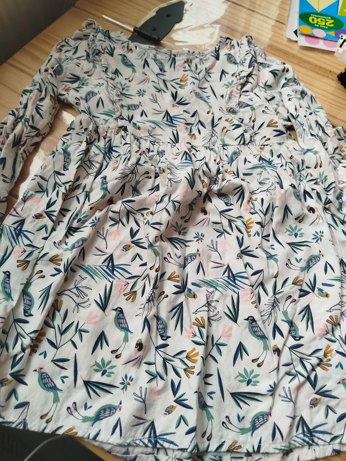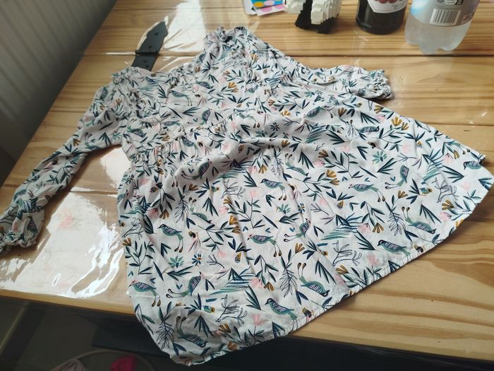 Robe blanche motif fleur et oiseau marque Gémo taille 4 ans