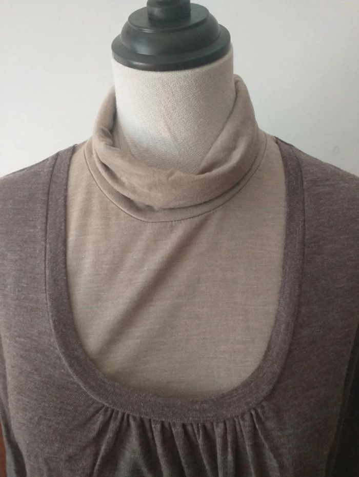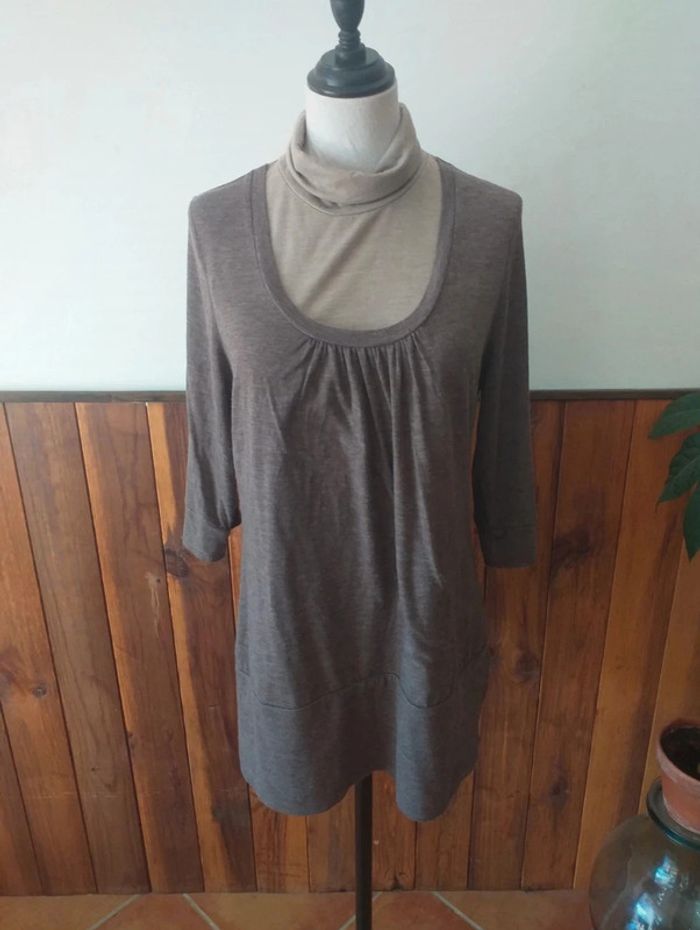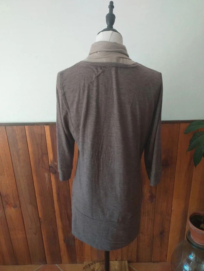 Haut tunique doublé long col roulé marron T 4 manches 3/4, voir les photos avec les mesures #bakecotaille42femme