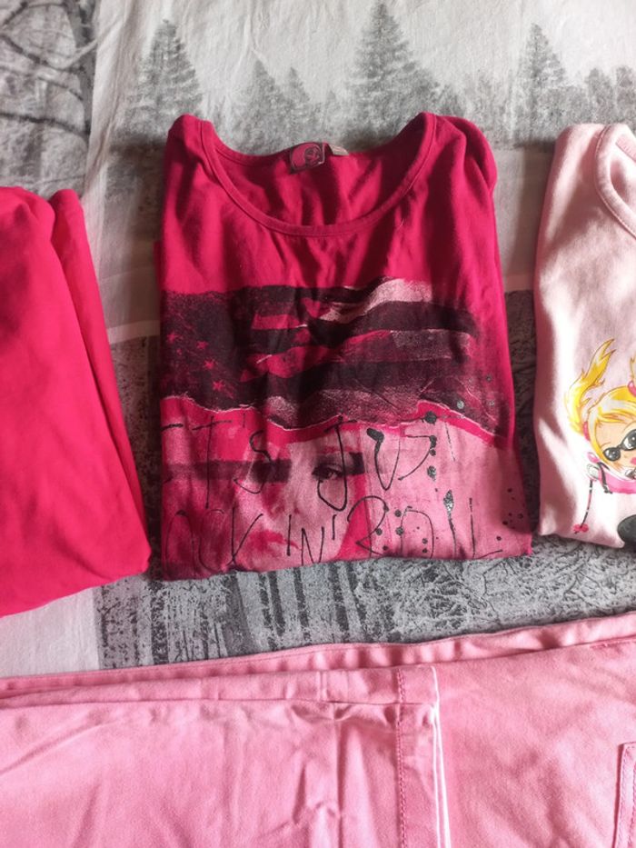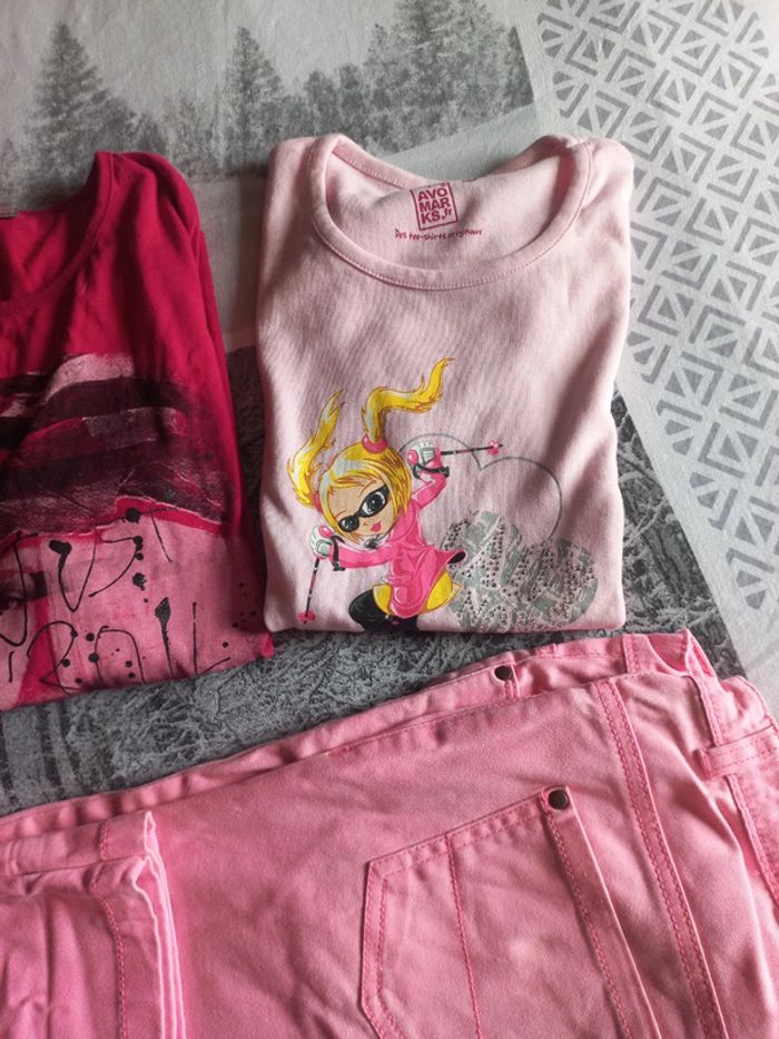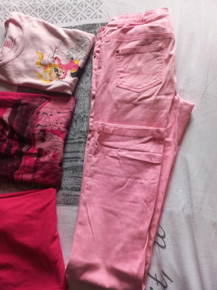 Lot 14ans fille n5 1 jean rose 2 tee-shirts manches longues ( 1 à 1 petite tache derrière voir photo) 1 tee-shirt #bakeco14ansfille