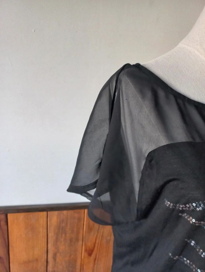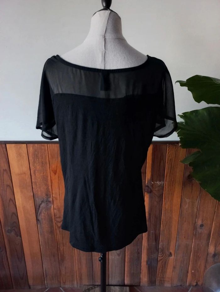 Tee-shirt noir avec des perles en forme de chat epaule voile - photo numéro 3