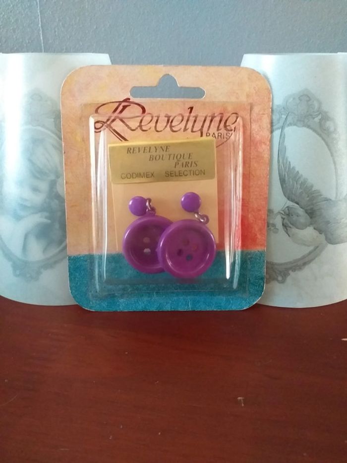 Boucles d'oreilles forme boutons violet neuves #bakecoaccessoires