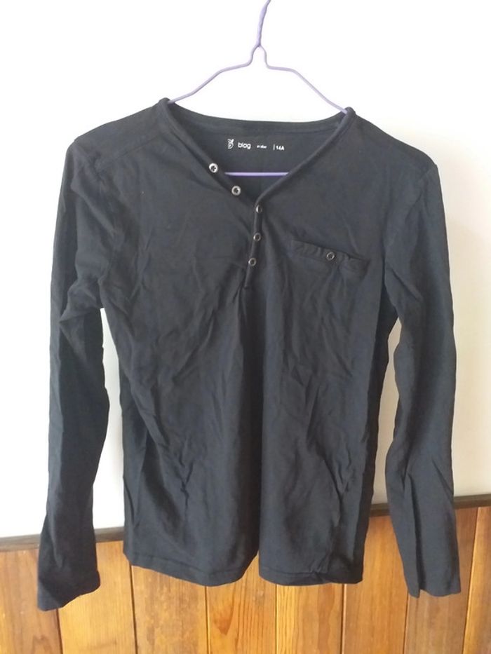 Tee-shirt manches longues noir avec boutons au col #bakeco14ansgarçon #bakecotaillexshomme