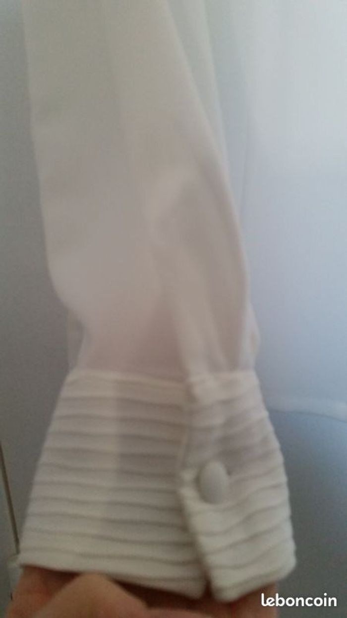 Chemisier ultra féminin , élégant. Fermeture par boutons. Manches longues, poignets boutonnés. Plis au col et poignets. Très peu porté ! Longueur 70cm.