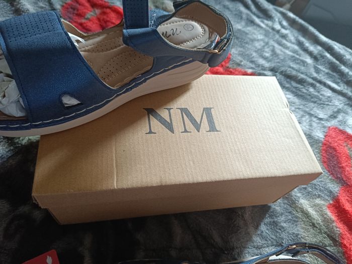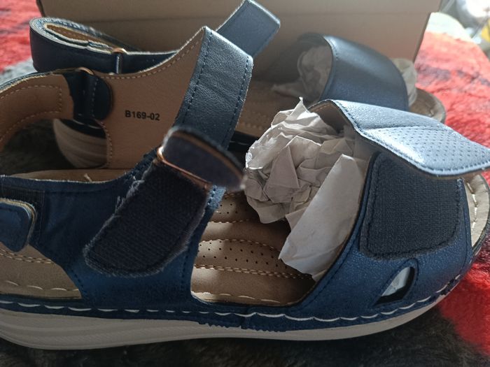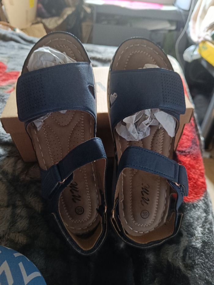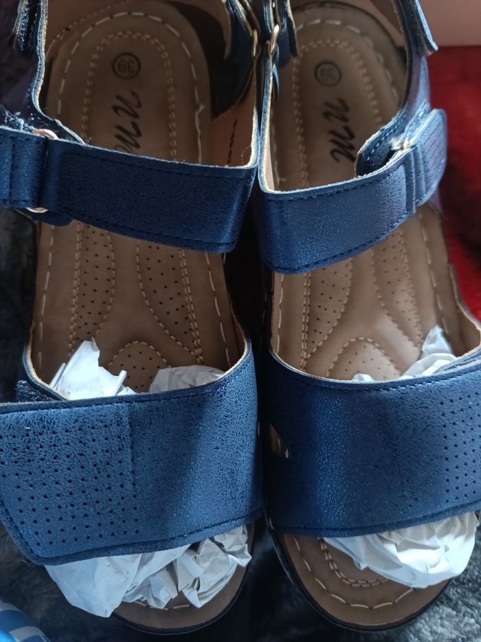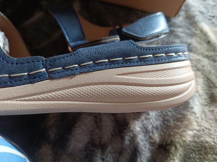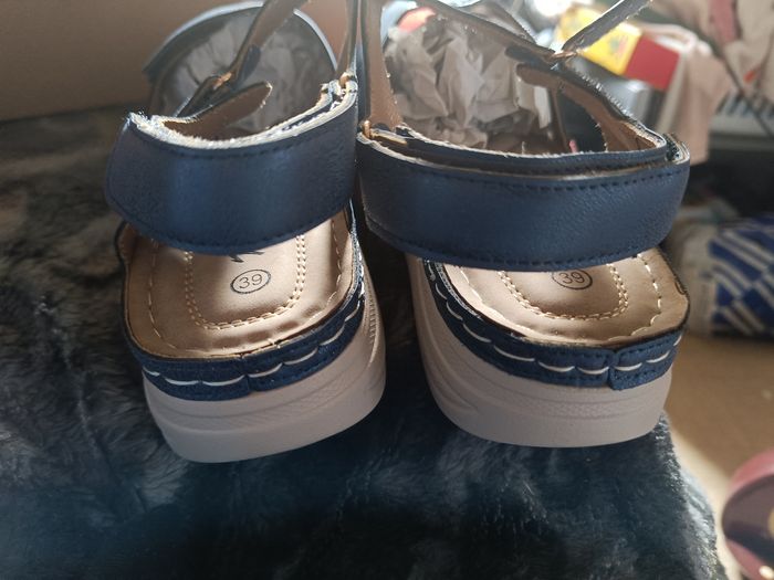 Chaussure ouverte sur le devant s ou re a scratch très agréable légèrement compensé couleur bleu nuit taille 39