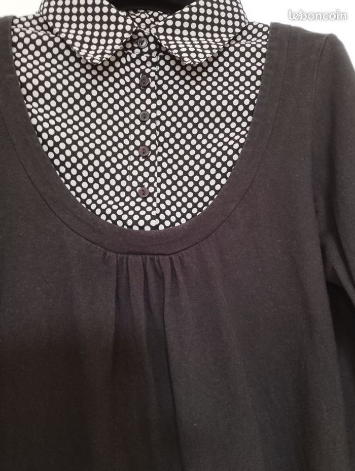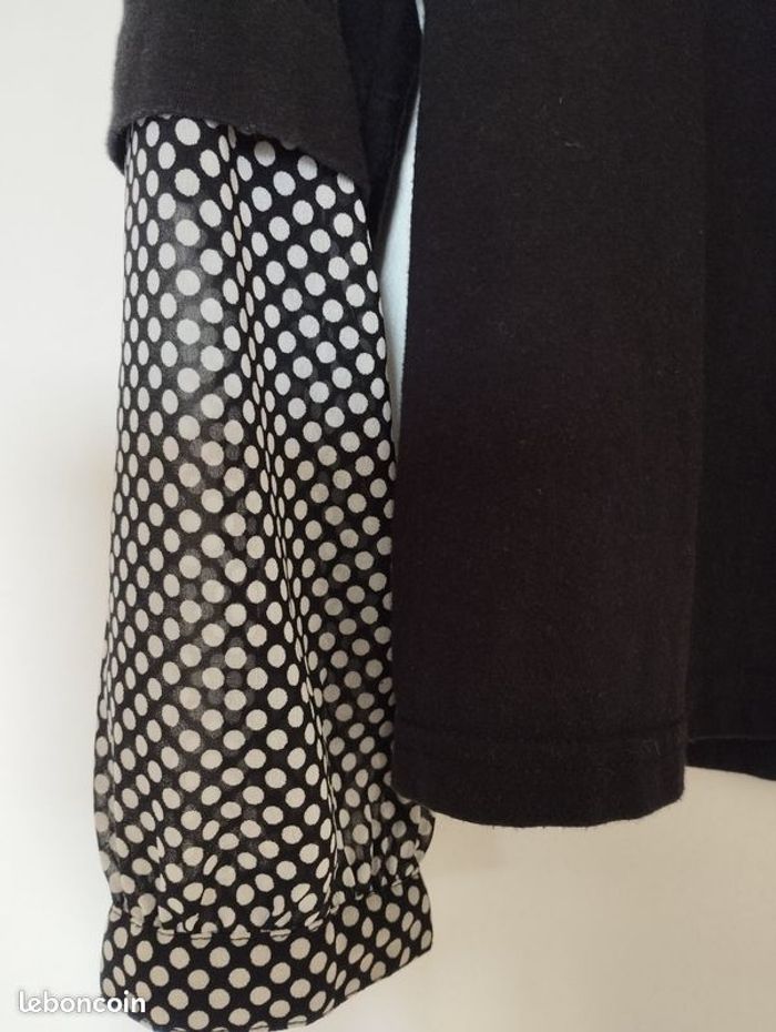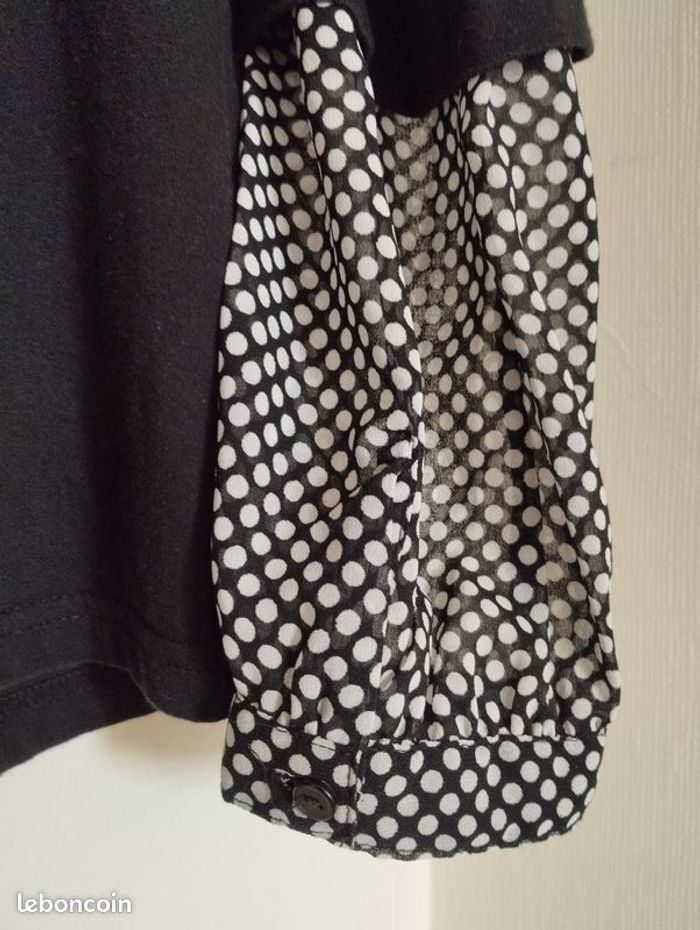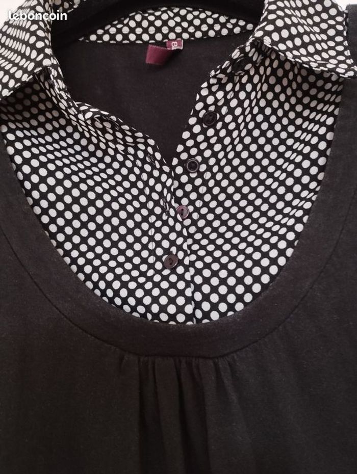T-shirt 2 en 1 de la blancheporte. T-shirt coton et chemisier voile à poids noirs et blancs. 38/40 . Longueur 60cm