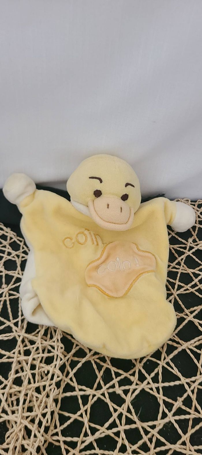 Doudou plat marionnette canard jaune Coin Coin EVEIL ET TENDRESSE