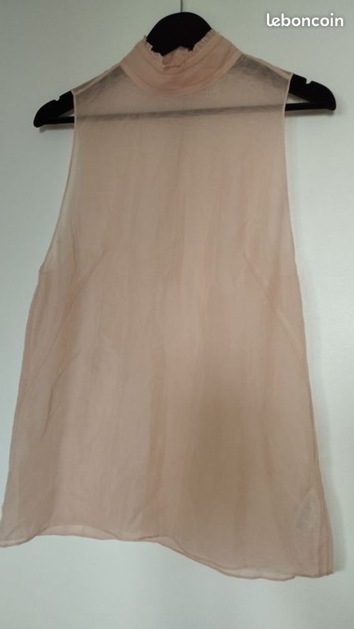 Chemisier tunique H&M. Soie. Voile transparent rosée, fluide, boutonnées au dos. Longueur 70cm. Taille 40. De chez H&M. Très peu porté.