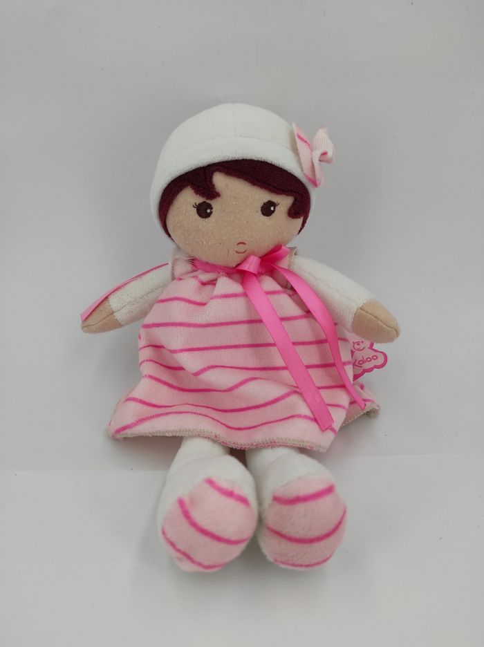 Poupée chiffon rose et blanche KALOO Tendresse Rose K avec robe rose rayée.
