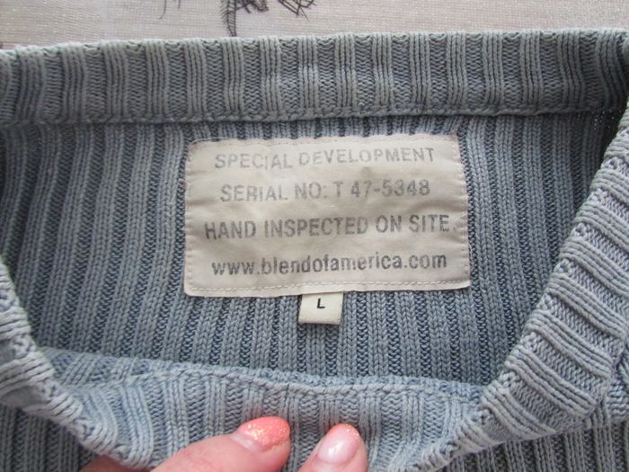 Pull Homme en bon état car bien porté. Taille: L - d'autres vêtements ici #ysatis13hommetaillel N'hésitez pas à faire un lot pour profiter des remises activées #pull #homme #bleu #blend #america #taillel