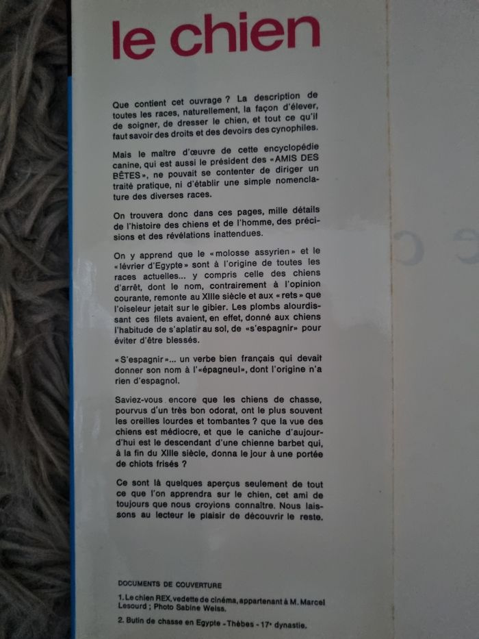 Encyclopédie Canine :Le Chien,de Mery Fernand,édition Larousse, de 1959,la couverture de protection est abîmé mais la couverture du livre est en très bonne état voir photos, pages légèrement jaunis par le temps.