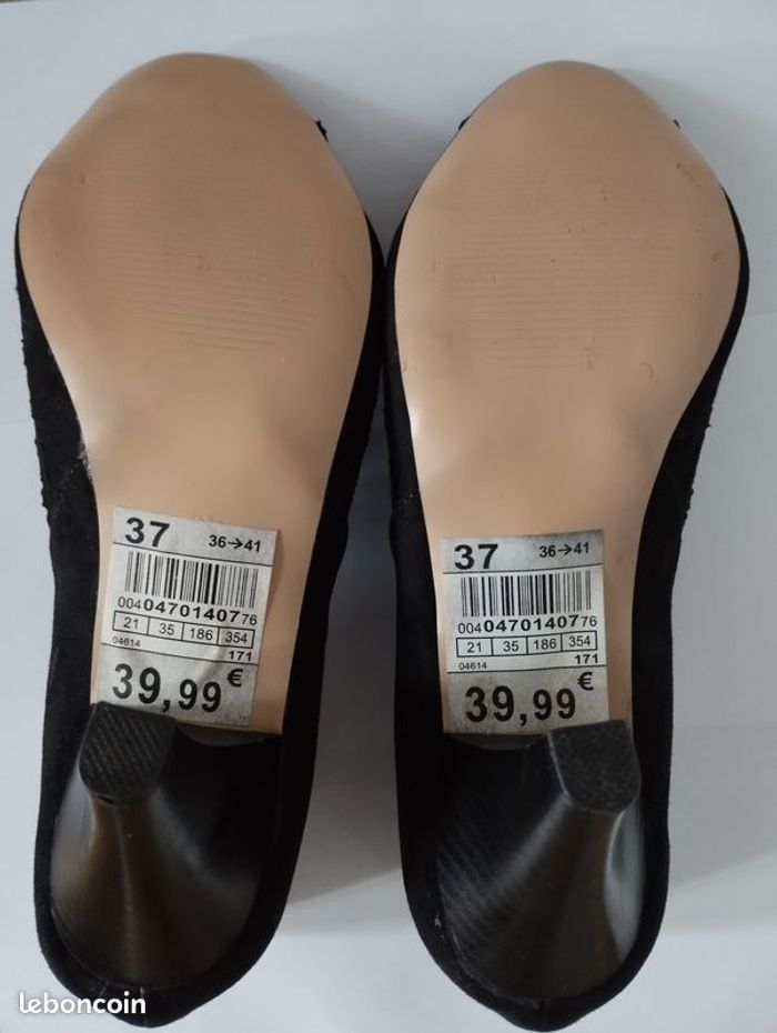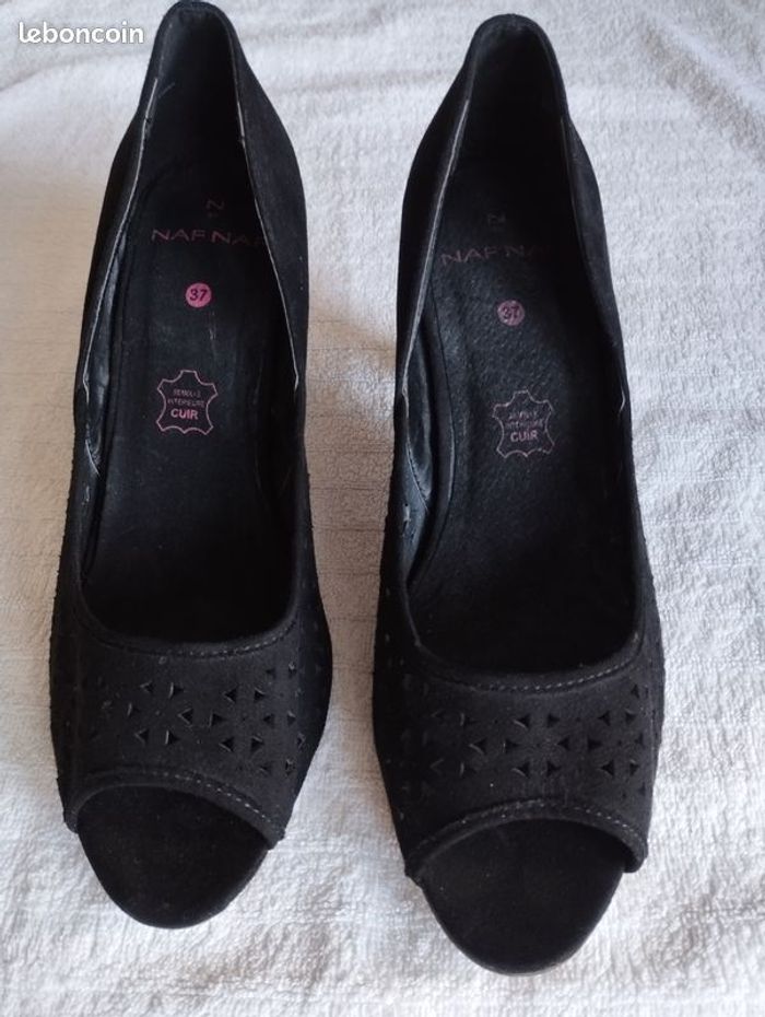 Escarpins neuf de chez Naf Naf, intérieur cuir, extérieur daim. Noir, Pointure 37. Acheté en l'état comme montre les photos, et jamais porté ! Très bon état.