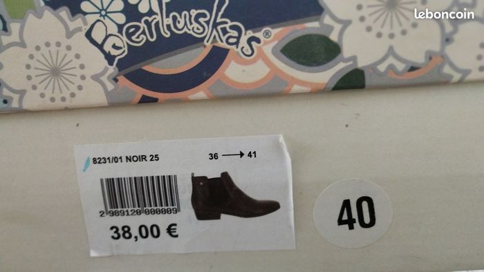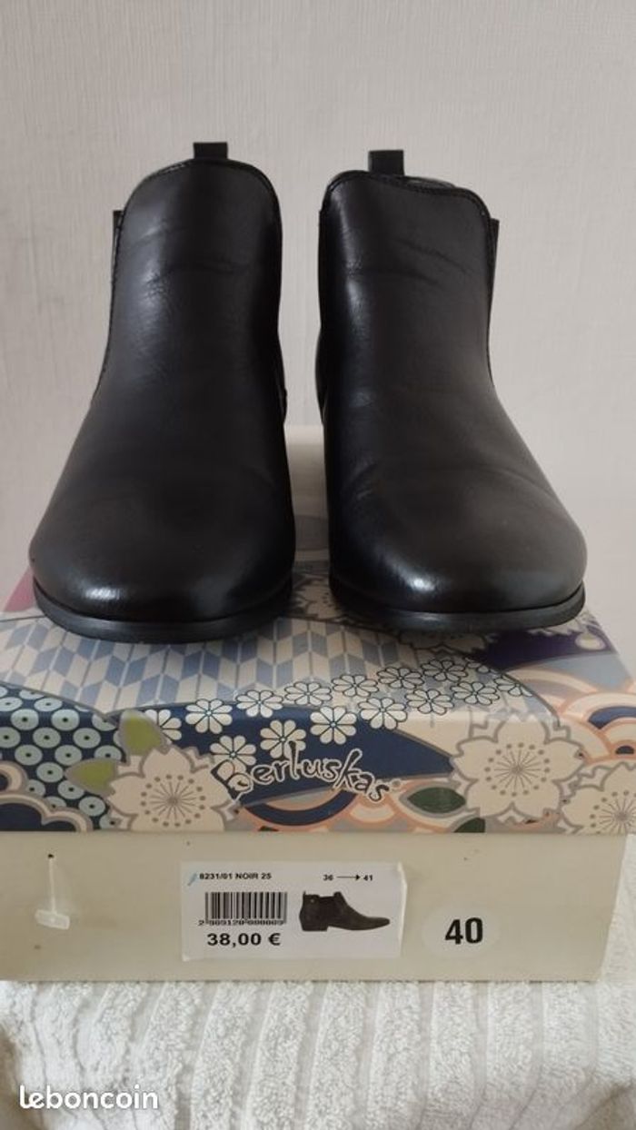 Chaussures Boots en cuir noir NEUF de la marque Berluskas. Prix d'achat 38€ Pointure 40