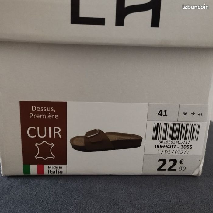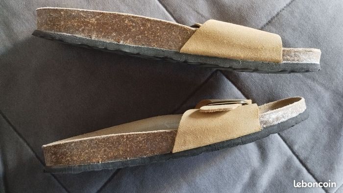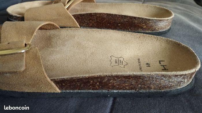 Chaussures 41 en cuir à boucle dorée de chez LH chaussures Italienne. Daim. Semelle forme à l'intérieur. Semelle extérieure striée et antidérapante. Très confortable ! Prix d'achat 23€.