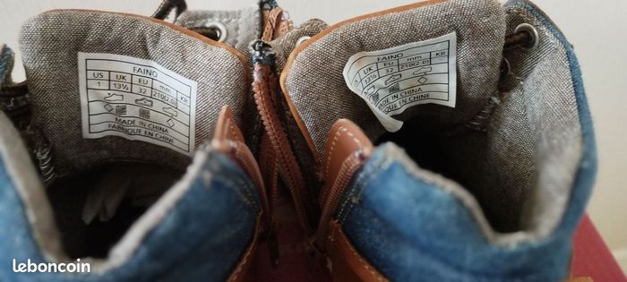 Chaussures lacets en cuir souple de la marque Levi's pour enfant, pointure 32. Le haut de la chaussure est en tissu jeans, plus rembourré . Semelles caoutchouc et antidérapant. Très peu porté, reste en très bon état , chaussures très correctes !
