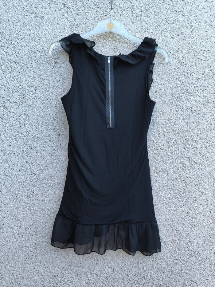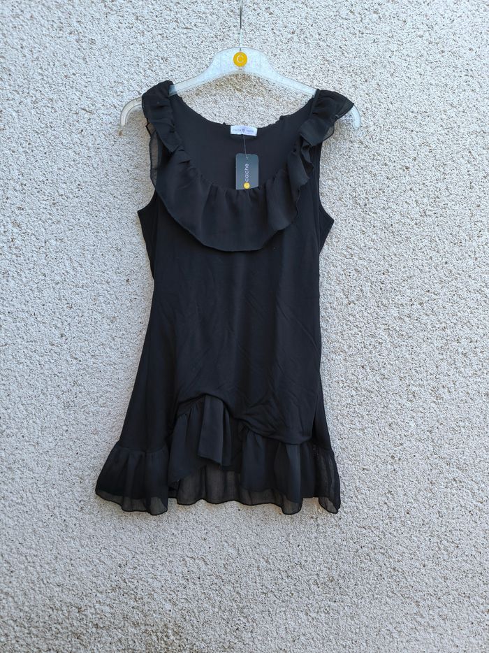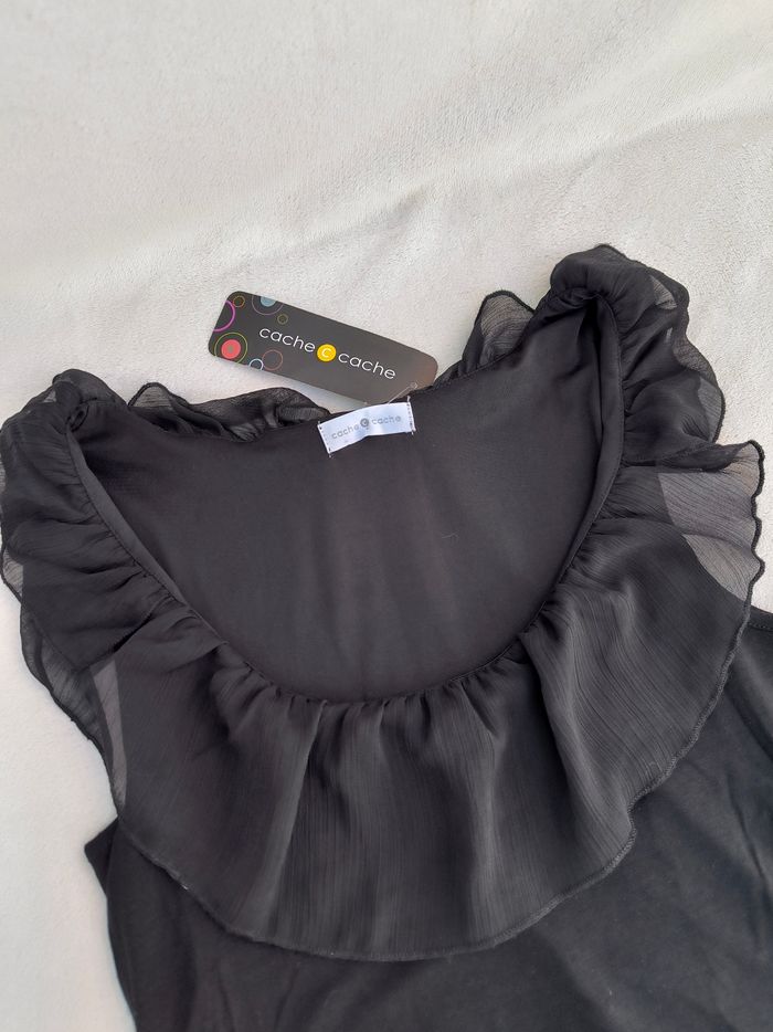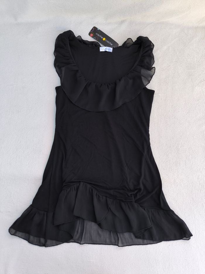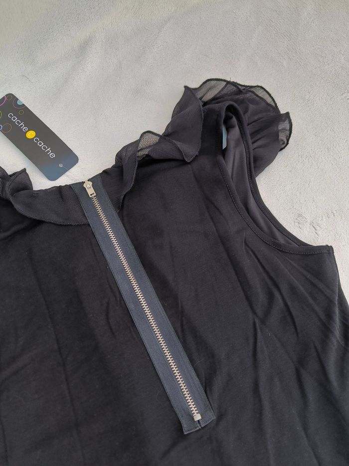 Débardeur/Tunique à bretelles Marque Cache Cache Taille 3, 40-42 • Coloris noir • Col rond • Voiles au col et bas • Fermeture éclair décorative au dos • Stretch Largeur aisselle à aisselle non étirée : 38 cm Largeur aisselle à aisselle étirée au maximum : 58 cm Longueur totale : 74 cm Longueur aisselle : 52 cm Neuf #evelyne_taille_40 #evelyne_taille_42