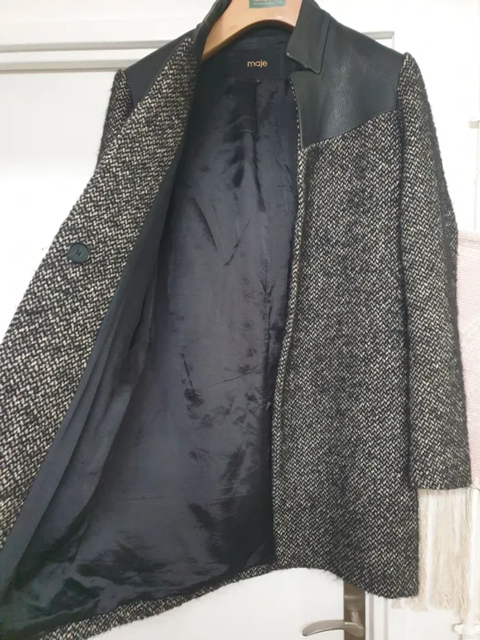 Manteau Caban Laine et Cuir Maje Taille 2 - photo numéro 1