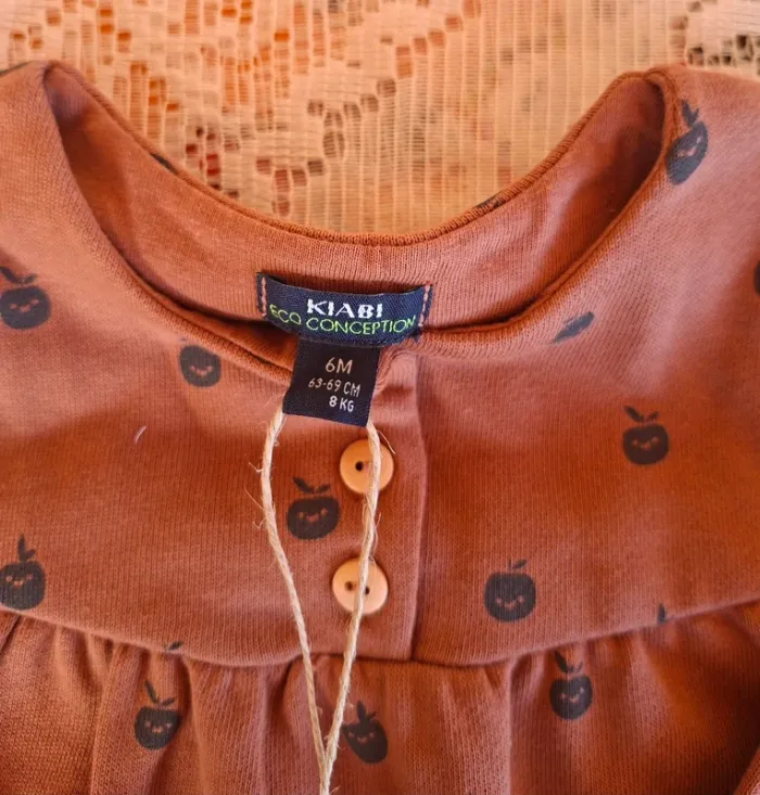 Robe bébé KIABI marron pommes 6 mois neuve - Éco Conception - photo numéro 1
