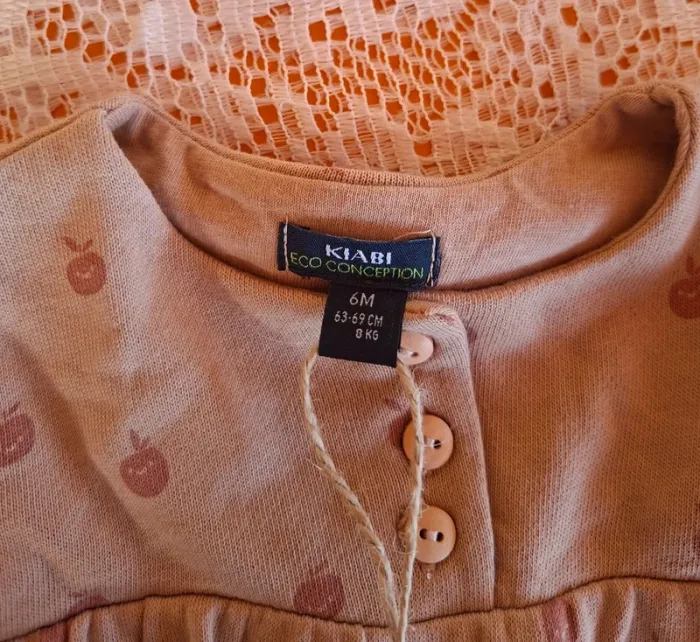 Robe bébé KIABI beige pommes 6 mois neuve - Eco Conception - photo numéro 1