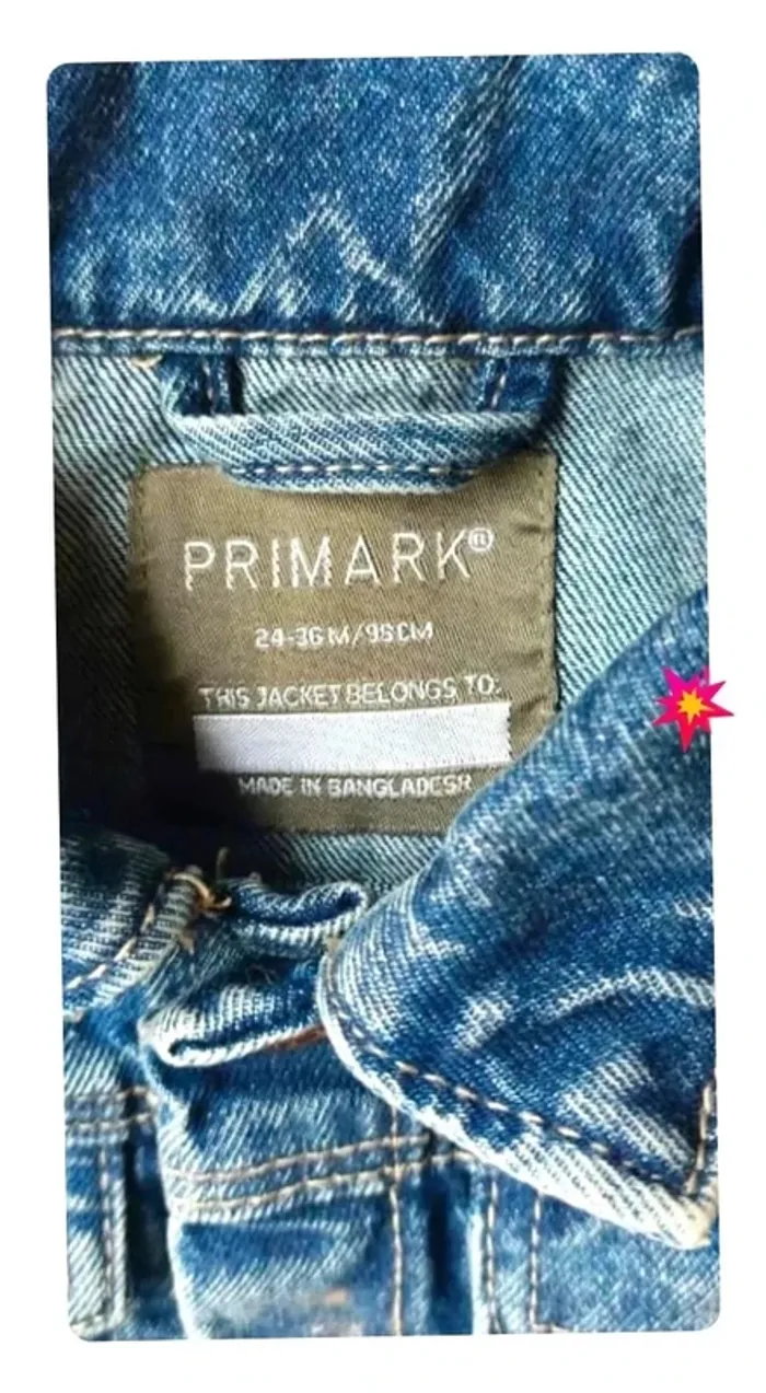 Veste en jean, Primark, en très bon état, taille 2-3 ans Matière 100% coton #taille2ans_sofaia971 #vesteenjeans #jeanjacket #jacquetasjeans #chaquetatejana #giaccadijeans #spikerjas #veste #jean #oversize #vintage #rétro #lookunique
