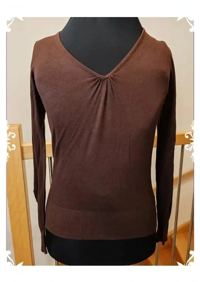 Pull marron col v #fripasfemme38 💥 **Cliquez sur le #Fripas(Taille)** juste au-dessus pour retrouver facilement tous les articles de la même taille dans notre dressing trié avec soin ! 🌼 **Réductions automatiques** sur les lots à partir de 2 articles. Minis prix déjà appliqués pour que tout le monde puisse se faire plaisir. Profitez-en vite !