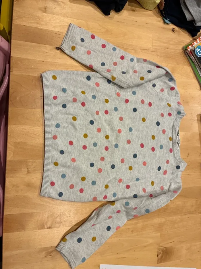 Joli pull léger h et m fille 4-6 ans Pois multicolores sur fond gris Très bon état H et M #zinzin33_fille5ans #zinzin33_fille4ans #zinzin33_fille6ans