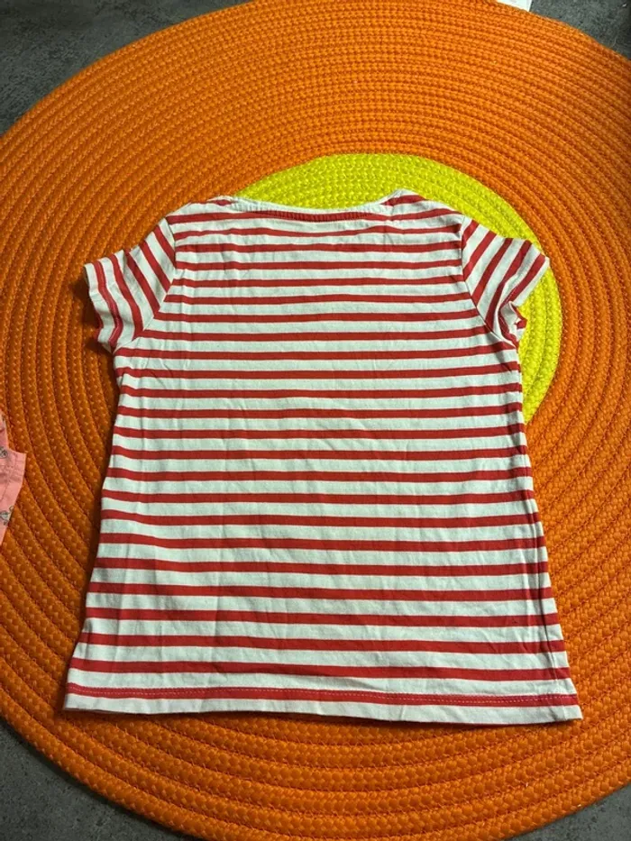 TEE Shirt en coton 5ans rayé corail et blanc kiabi parfait état manches courtes Coton bio Style marinière #zinzin33_fille5ans