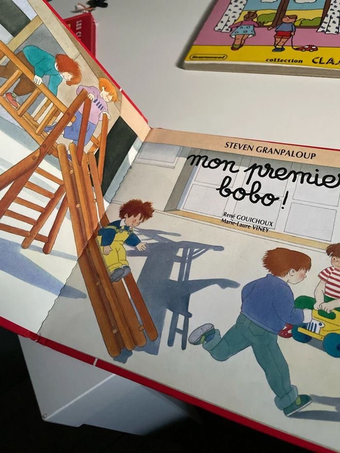 Livre vintage : Mon premier bobo Collection : Steven Granpaloup à l'école maternelle René Gouichoux ; Marie Laure Viney Edition : Milan - 1988 20 x 20 cm Album aux jolies images pour expliquer les petits moments du quotidien. Idéal pour les petits : un livre qui parle de la vie de tous les jours. Des mots qui racontent les émotions partagées, les rires et les larmes... Reliure en bon état A l'intérieur, les pages sont propres et en très bon état